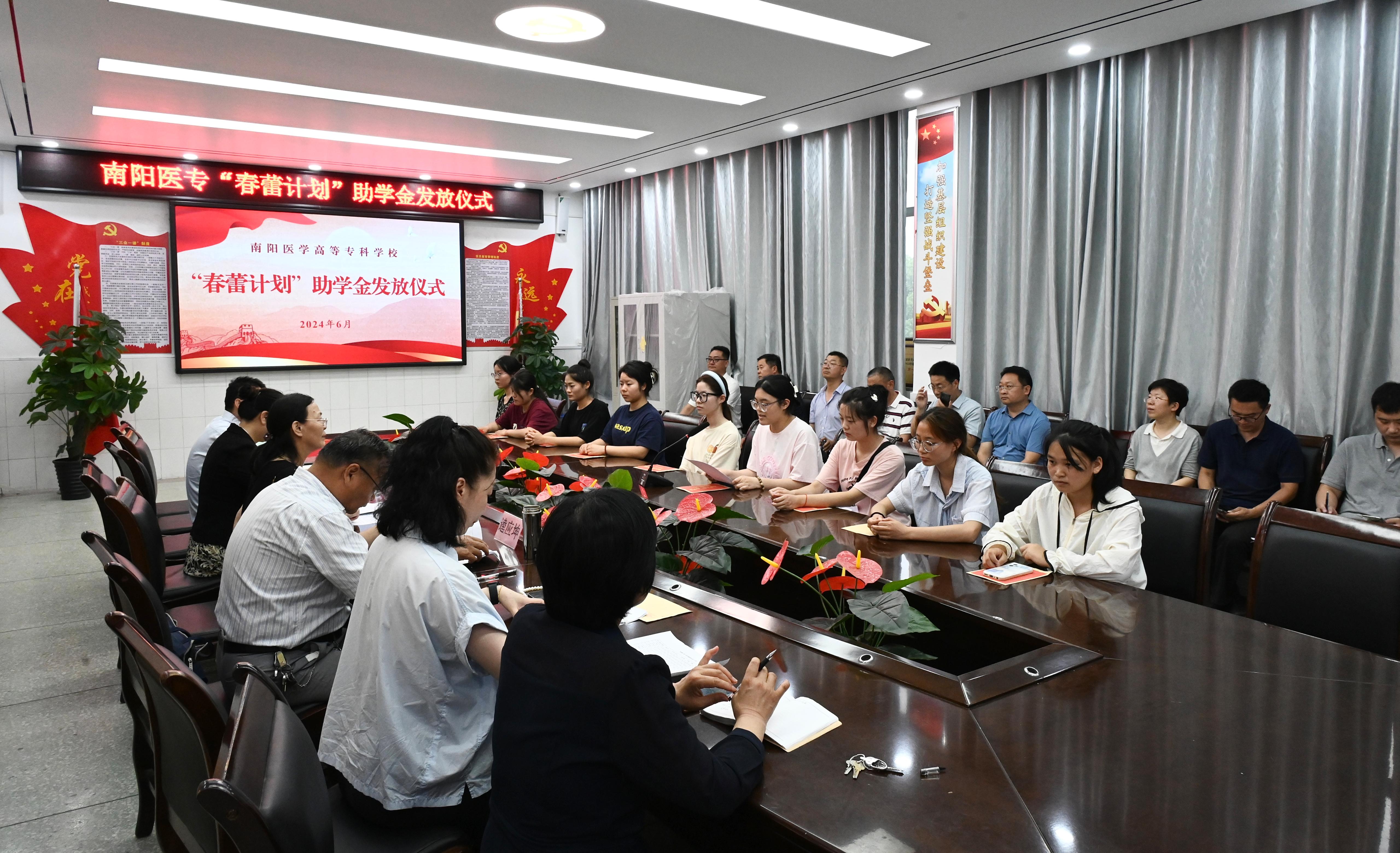 本网讯(文/校工会田园)6月13日,南阳医专“春蕾计划”助学金发放仪式举行。校党委委员、工会主席杜晓平出席,关工委副主任逵应坤、学生处长梁顺平、团委负责人刘怀东、相关涉学系部书记、副书记和受助学生代表参加。