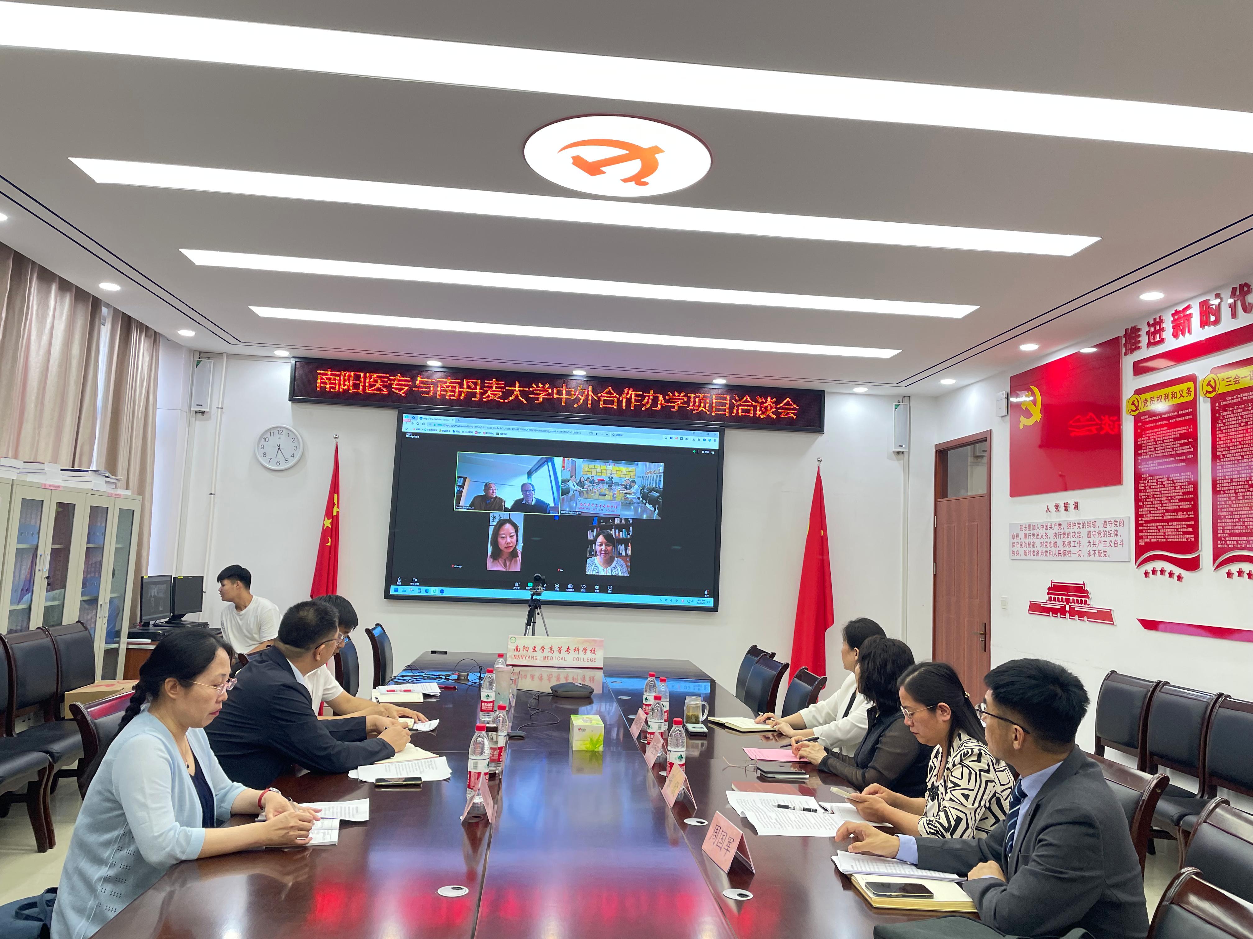 本网讯(文/外事处夏灵果)6月17日下午,我校与南丹麦大学召开中外合作办学首次洽谈会。会议采用Zoom视频会议的方式,南丹麦大学健康科学学院院长杰斯铂·尼尔森教授、北京办公室主任欧铁等在丹麦线上参会,我校会场设在仲景西区3号教学楼423远程会议室,校纪委书记刘金云出席并致辞,临床医学系、康复医学系、护理系、国际教育学院负责人参加。会议由对外交流合作处处长范卫杰主持。