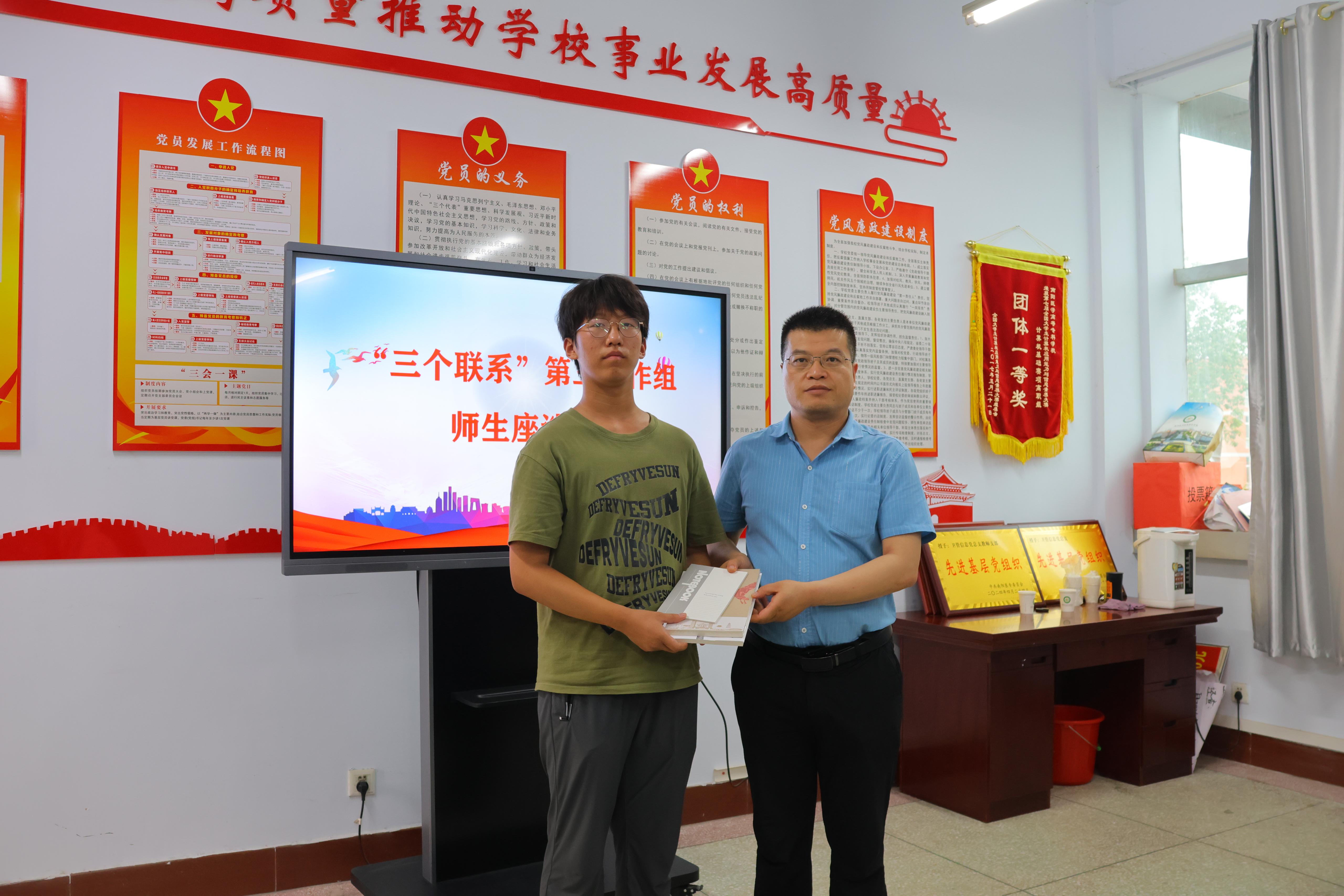 会上,工作组干部将精美图书赠予联系学生,勉励同学们不比吃穿比理想,不比物质比精神,发奋图强,励志成才!