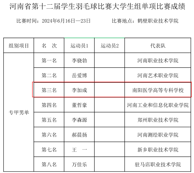 这是我校羽毛球队在省级比赛中获得的最好成绩。展现了仲景学子团结奋进、勇攀高峰的精神风貌,为学校体育工作高质量发展做出了应有的贡献。(编审李峰松)