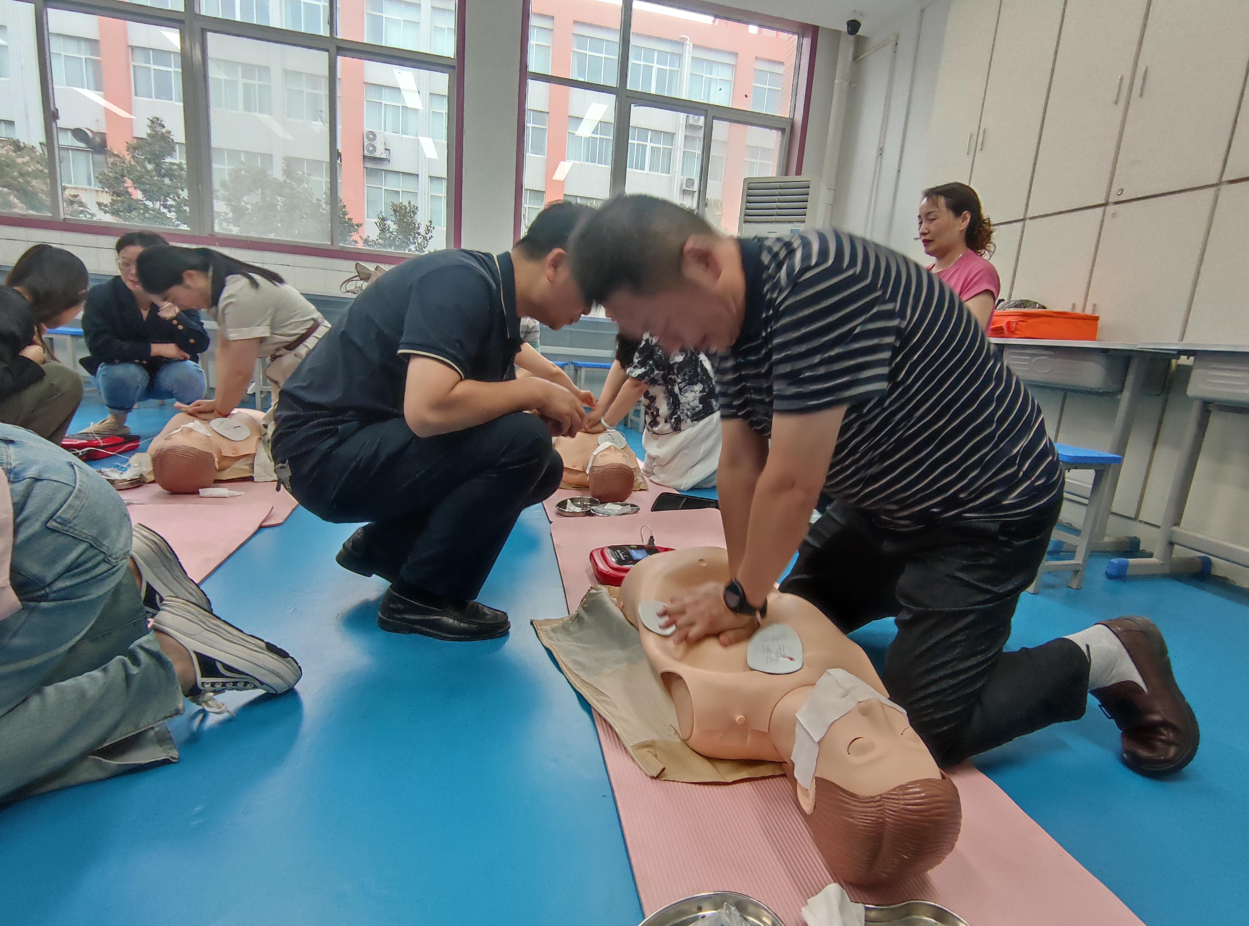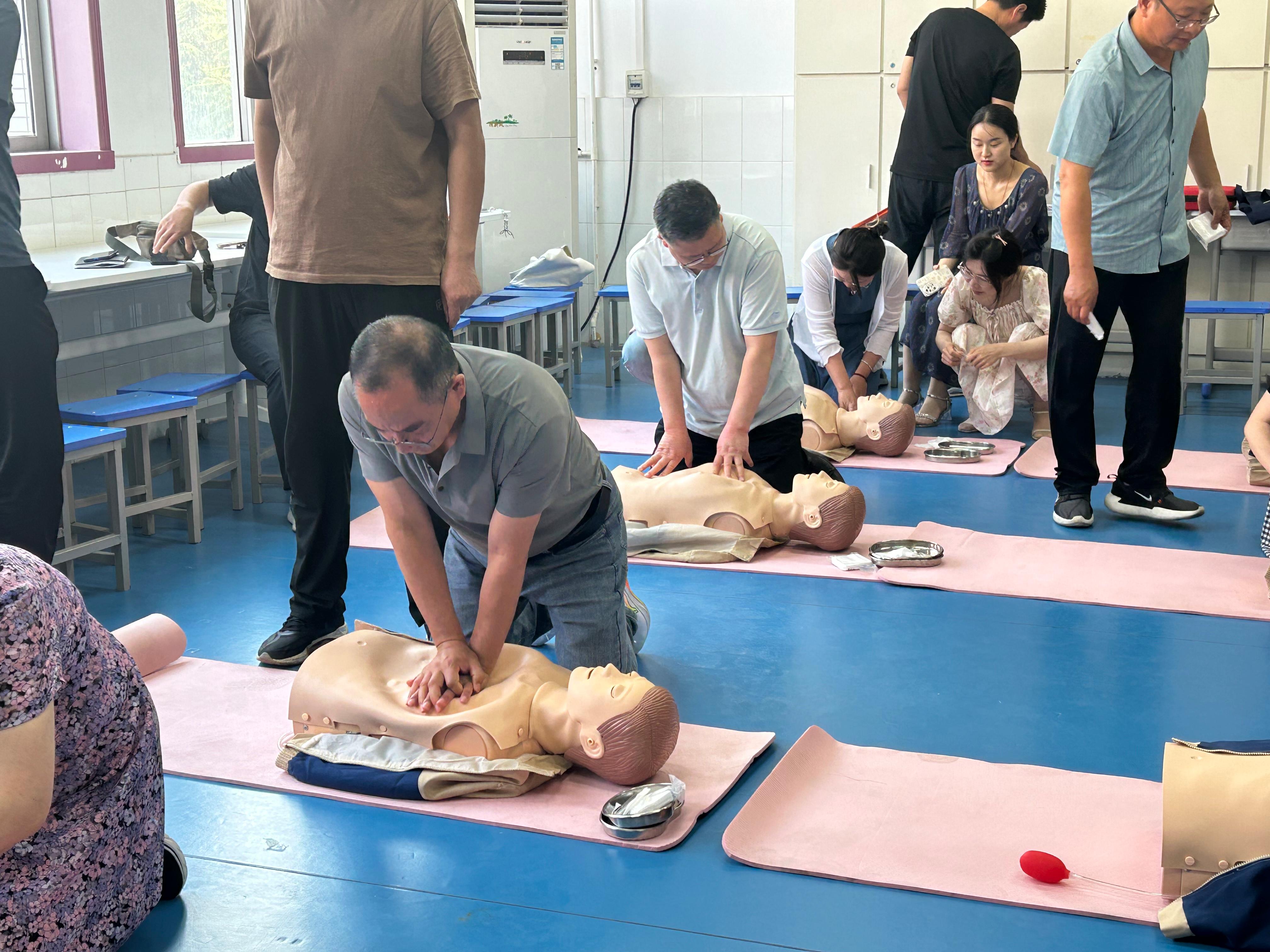 培训内容涵盖了心肺复苏、体外除颤、止血包扎、骨折固定、海姆立克急救法等现代急救技术,并创新性地引入了中医急救技术,使急救知识更具实用性和针对性。在培训过程中,教职工们展现出了极高的学习热情和专注度,他们认真听讲、积极练习,力求将每一个急救细节都做到精益求精。