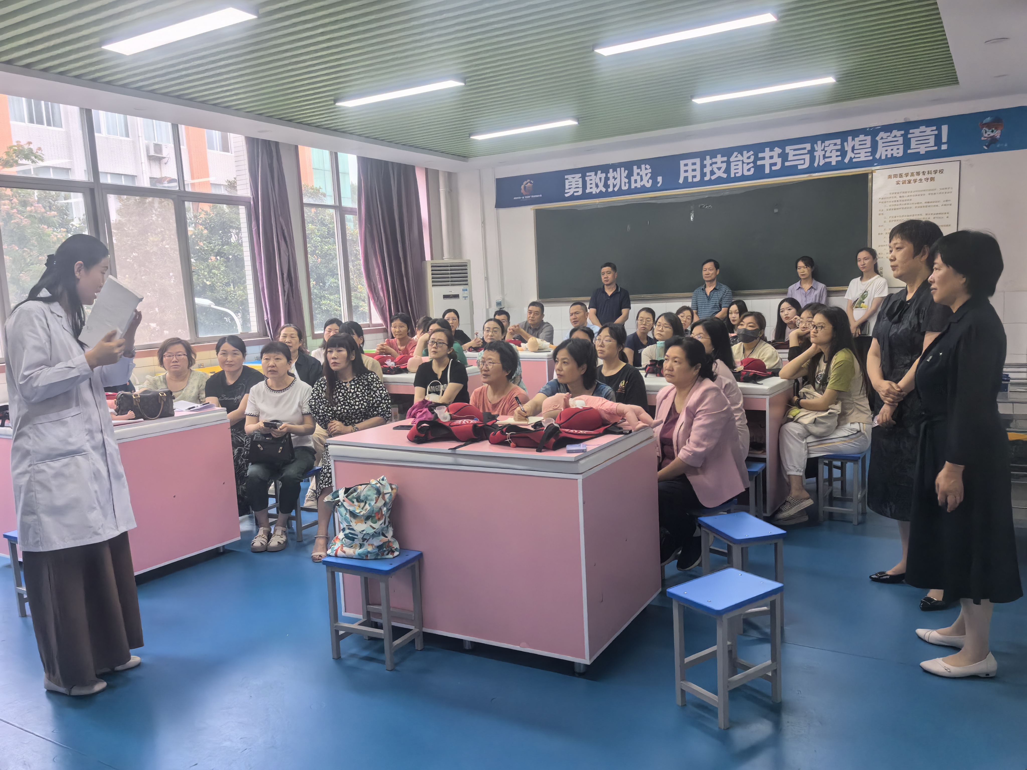 此次培训活动在校教务处的精心指导下,由护理系牵头组织,并得到临床医学系和针灸骨伤系的鼎力支持。培训形式丰富多样,线上线下相结合,通过精心设计的理论课程,我们深入浅出地阐释了急救知识,确保每位参训人员都能透彻理解;结合精准规范的示范操作,我们为参训者展示了急救技能的实际运用,使其印象深刻;此外,生动有趣的分组练习更是让参训人员在互动中加深理解,全面、系统地掌握急救知识和技能。