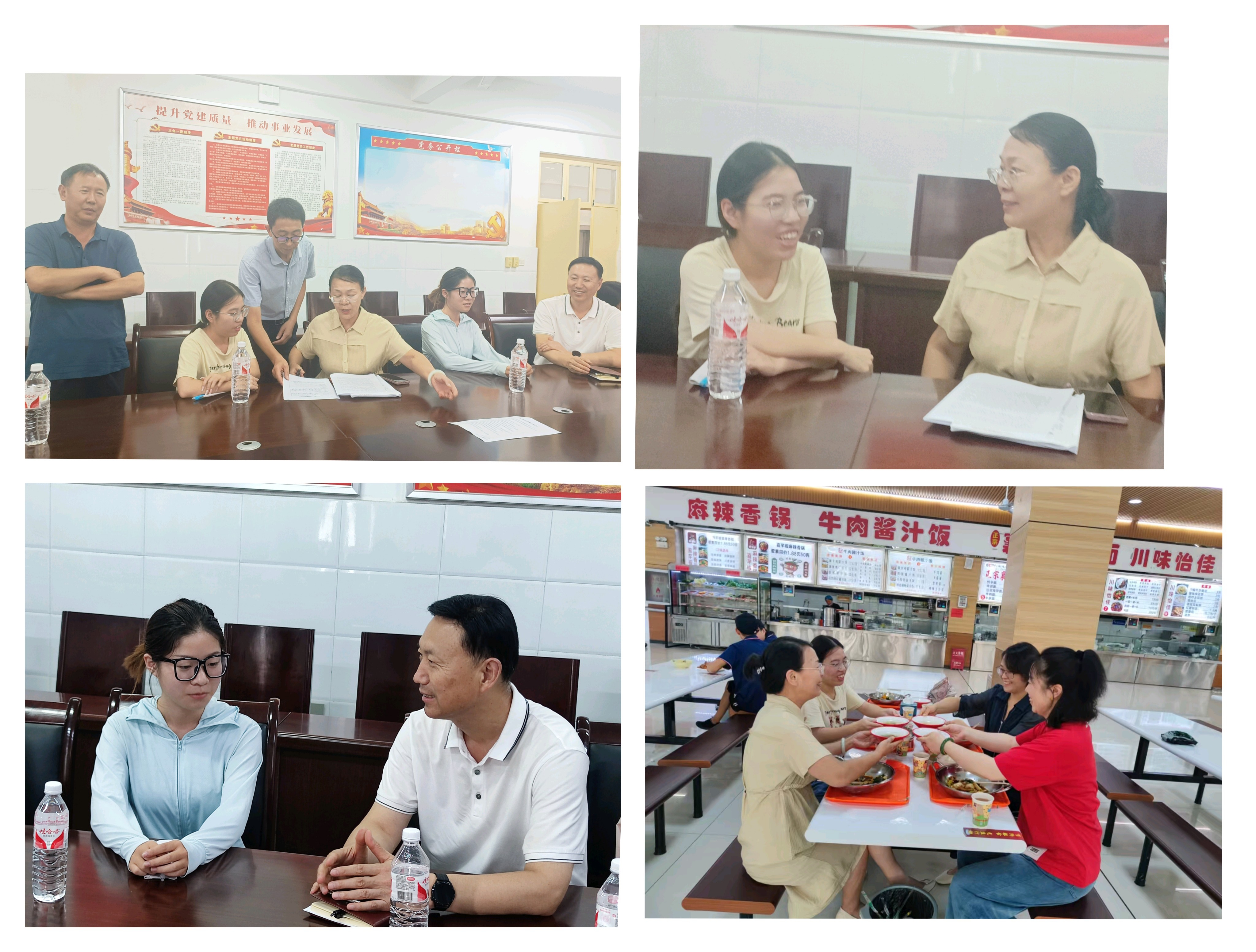 会后,“三个联系”第五工作组联系同志分别与专业带头人、联系学生见面,亲切交流。午间,杜晓平与专业带头人、联系学生在学生食堂一起就餐。(编审李峰松)