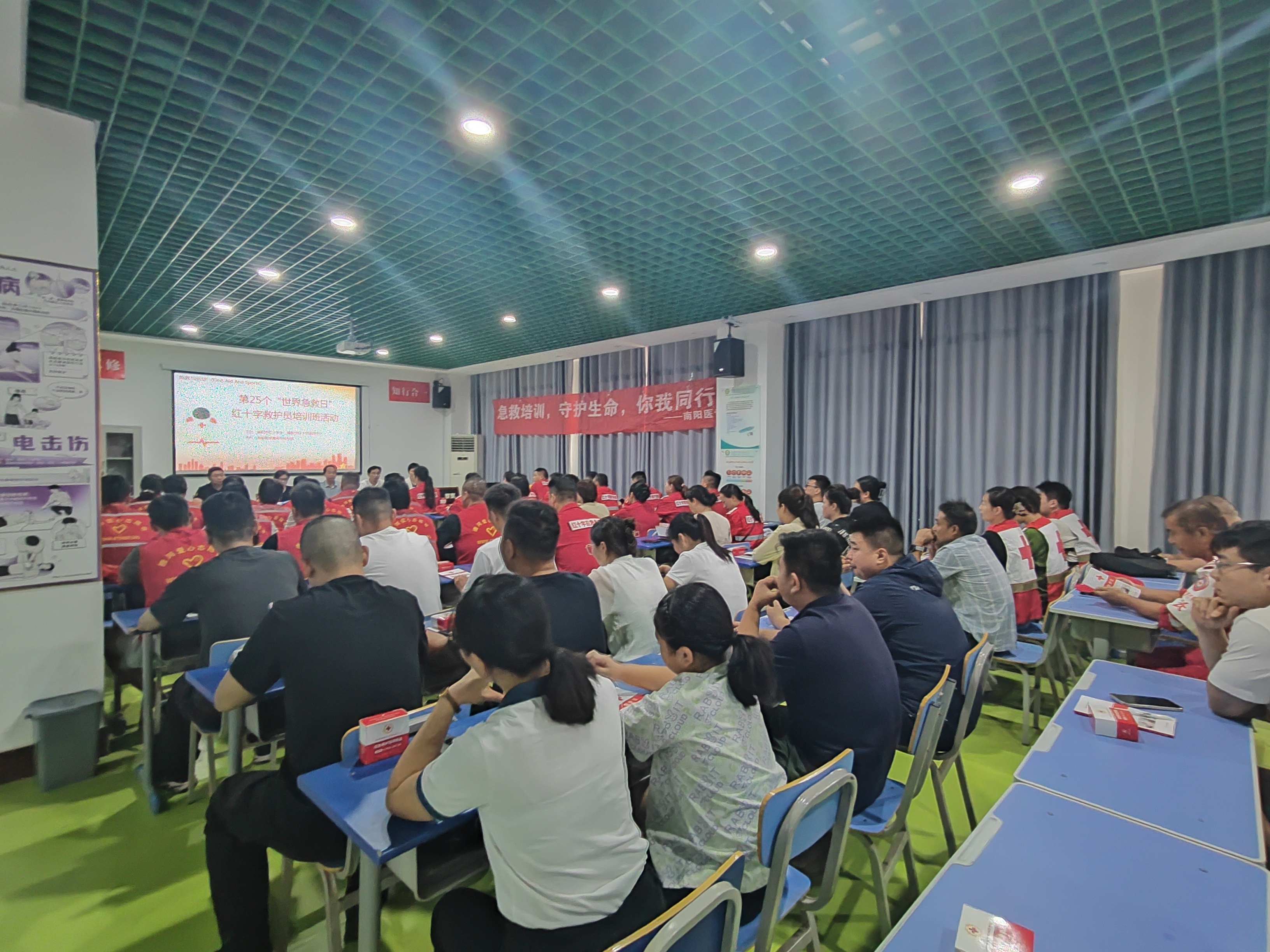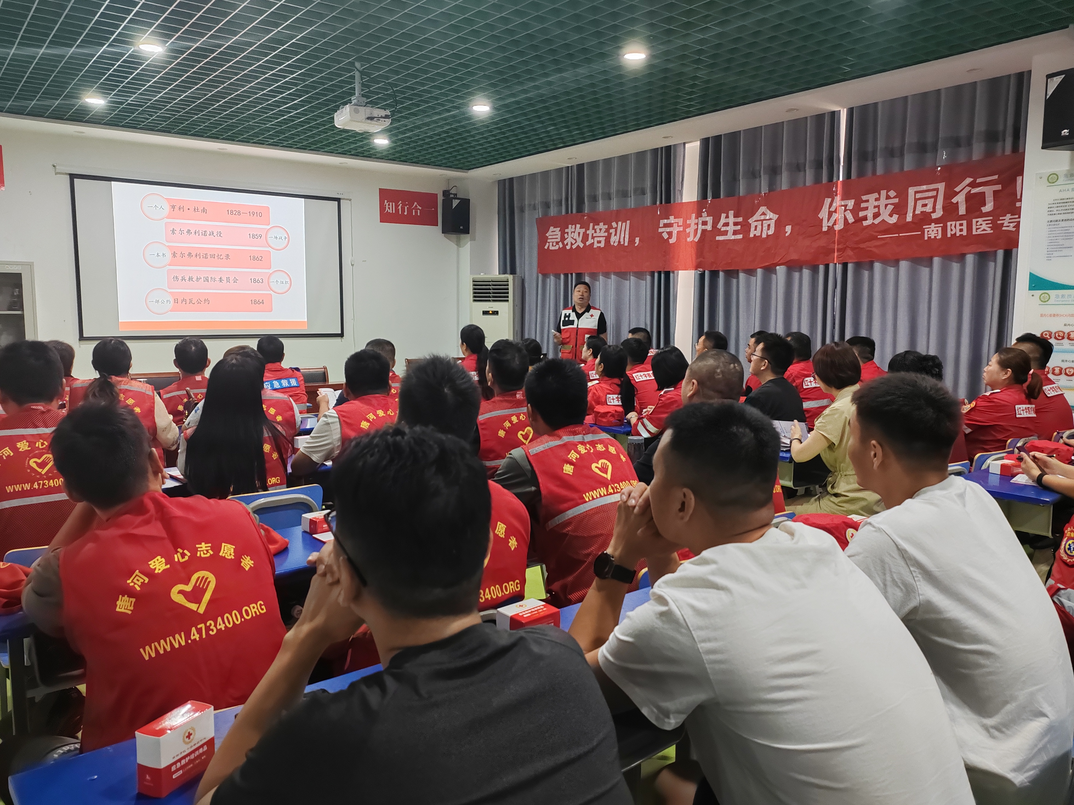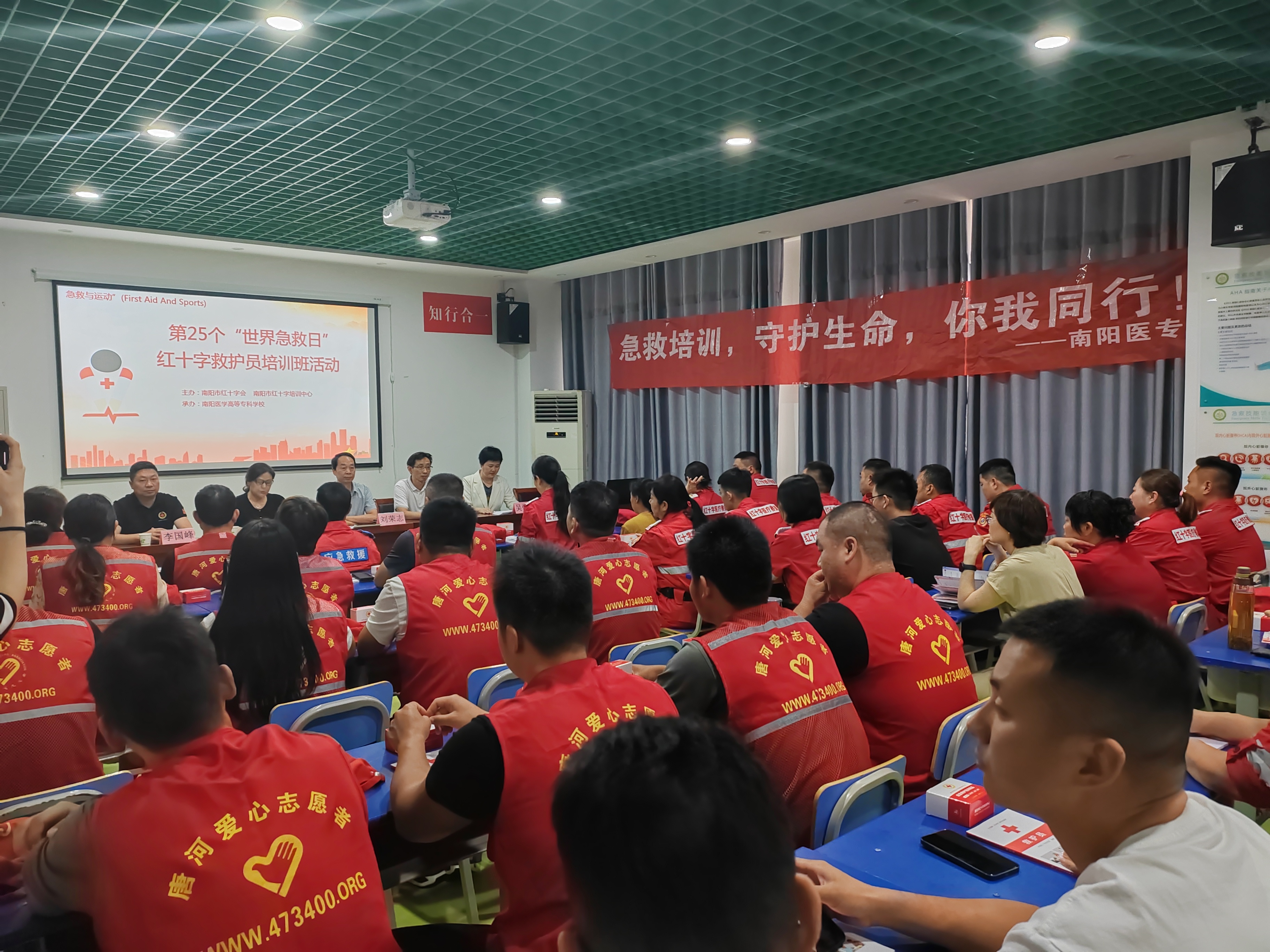 本网讯(文/护理系 何红丽)9月14日,我校联合南阳市红十字会、南阳市红十字培训中心,在学校实验楼急救大厅开展了第25个“世界急救日”红十字救护员培训活动。市红十字会党支部书记、副秘书长谢颖,市红十字培训中心主任李国峰,南阳医专党委委员、副校长刘荣志,临床系副主任周毕军、护理系副主任吴俊晓出席培训开班仪式,我校教师、南阳市镇平县、唐河县的志愿者、其他社会人员共计60人参加培训。开班仪式由吴俊晓主持。