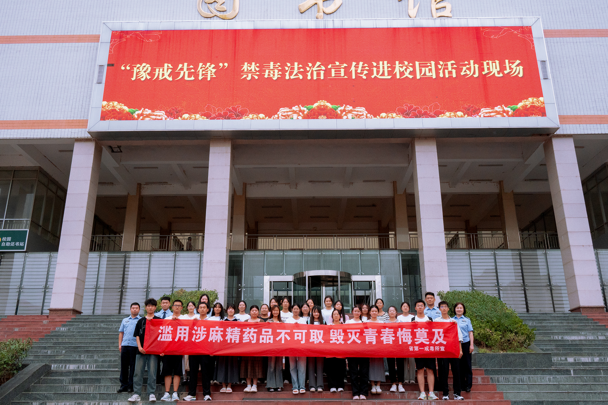 民警针对大学生存在的好奇心理、炫耀心理、虚荣心理、逆反心理重,对吸毒违法行为缺乏认识,易受人唆使等特点,以通俗易懂的语言、生动鲜活的图文,结合真实典型的案例,提醒广大师生面对不明的物品要提高警惕,不要接受陌生人提供的物品,避免毒品侵害。授课内容以校内直播方式扩大了接受教育的范围。民警还在图书馆前结合仿真模型展示、禁毒知识问答等形式,展示各种常见毒品的仿真样本,解答同学们的疑惑,介绍了《中华人民共和国禁毒法》《河南省禁毒条例》等相关内容,让同学们充分了解吸毒、贩毒所要承担的法律责任及危害,帮助他们增加禁毒知识,提高尊法学法守法用法的积极性。