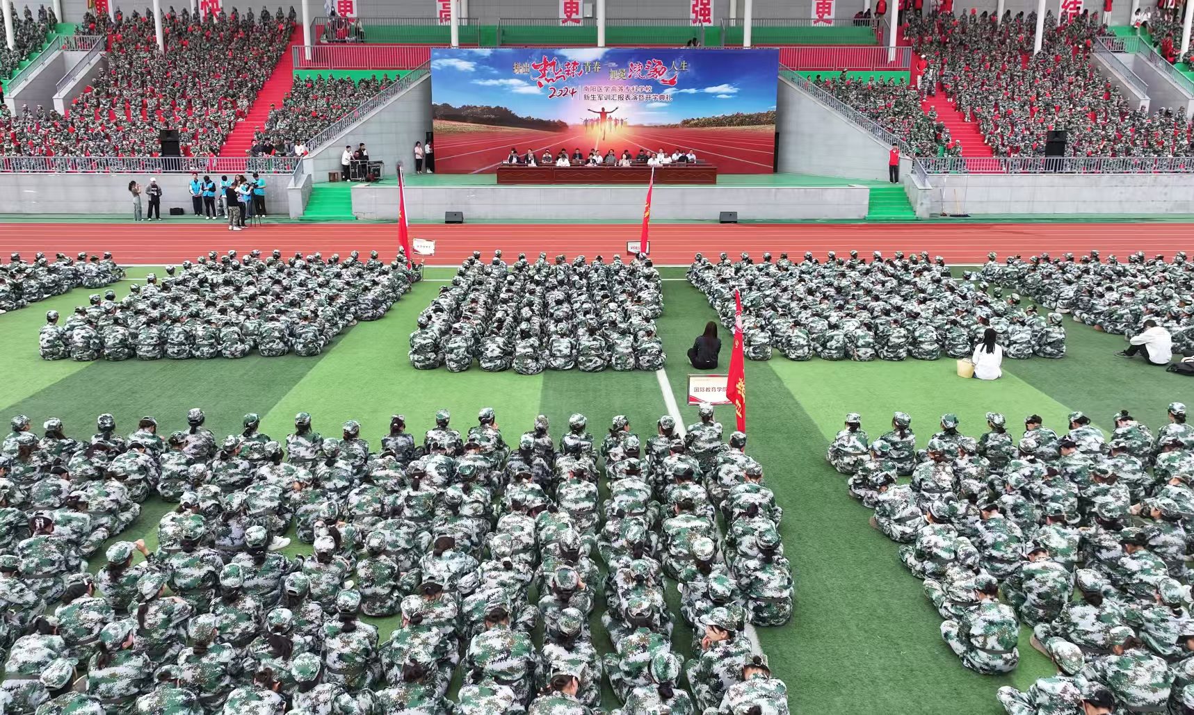 本网讯(文/党政办公室毕大鹏)盛世金秋,惠风和畅。9月21日上午,南阳医专2024级新生军训汇报表演暨开学典礼在仲景西区田径运动场隆重举行。在开学典礼上,校长范真以《拼出“热辣”青春加冕“滚烫”人生》为题,为2024级全体新生讲授了一堂生动的“开学第一课”。