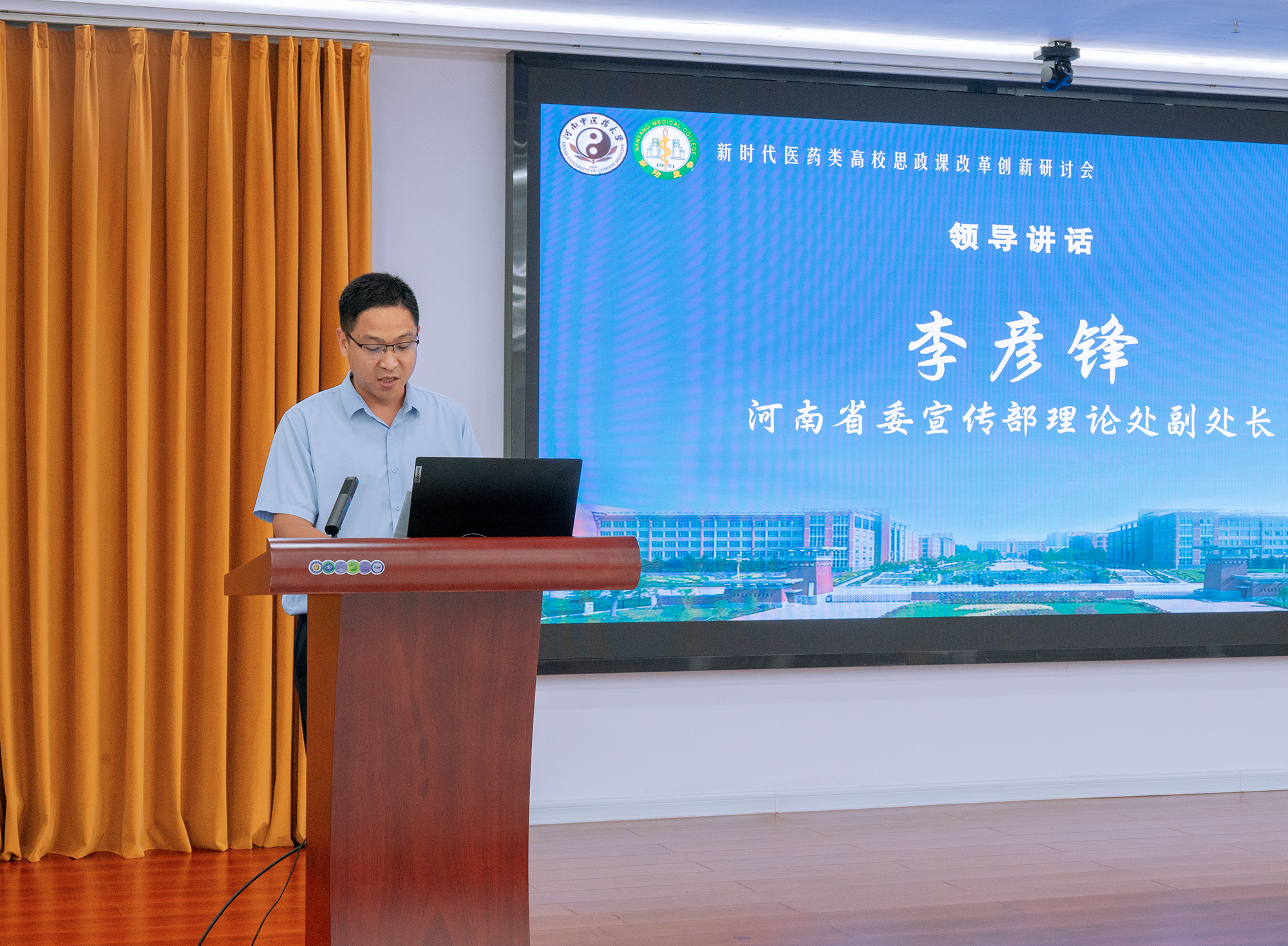 南阳医学高等专科学校校长范真、河南中医药大学党委副书记朱建光、中共河南省委宣传部理论处副处长李彦锋、河南省教育厅思政处一级调研员杨宗辉先后发言。开幕式由南阳医学高等专科学校党委副书记刘涛主持。