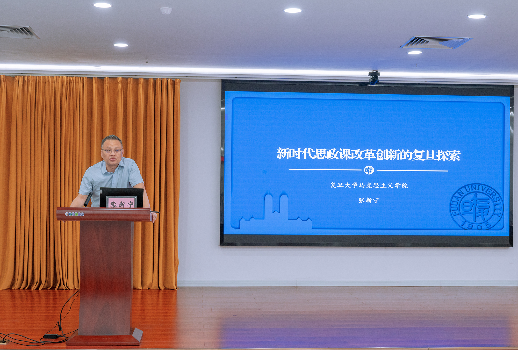 复旦大学马克思主义学院副院长张新宁教授围绕“新时代思政课改革创新的复旦探索”,以复旦大学马克思主义学院在新时代背景下,探索了思政课的改革创新,包括课程体系建设、教学资源整合和师资队伍建设,以提升教学内容和效果的实践为例。提出从坚持系统思维,改革创新主渠道教学;优化总体布局,谱写“大思政课”建设新篇;深化内涵建设,推动课程教学入脑入心,三个方面推动马克思主义理论学科发展,将其纳入学校规划,形成学科群联动发展。
