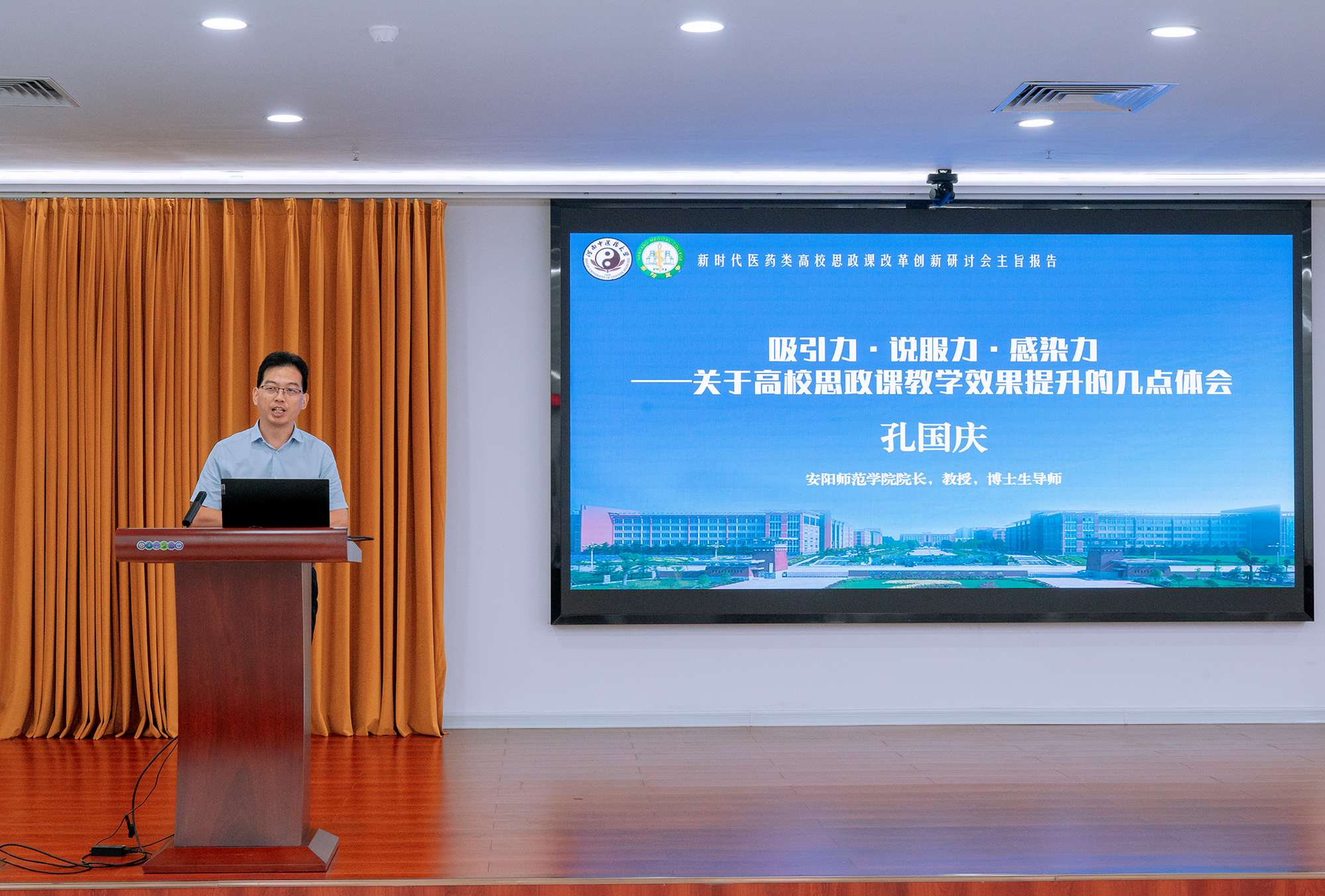 安阳师范学院院长孔国庆以《吸引力·说服力·感染力——关于高校思政 课教学效果提升的几点体会》为题,通过自己30年的思政课教学经验体会,从关注学生的困惑和理论期待视角提出“道—术—行”的逻辑关系,提倡用具体的实践案例来说明理论,让学生能够真正“用得上”;教学过程中注重情感共鸣和理论与现实生活的结合,避免自说自话,而要建立“双边对话”;强调从抽象到具体的转化,以及从理论到实践的桥梁搭建,使理论成为改变外部世界的物质力量。