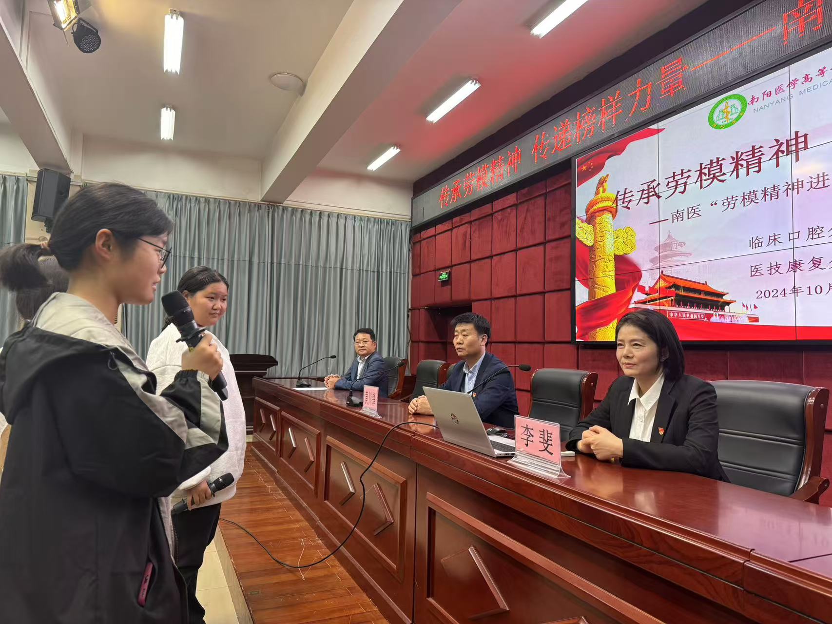 本网讯(文/临床系汤家军)为充分发挥劳模工匠示范引领作用,10月30日,临床口腔分会和医技康复分会联合开展“劳模精神进班级”活动,特邀黄川锋教授、李斐教授宣讲。主会场设在仲景西区图书馆五楼报告厅,校党委委员、工会主席杜晓平,口腔医学系党总支书记余飞海、医学技术系党总支书记钟俊、康复医学系党总支书记张立润、辅导员和学生代表参加。分会场设在临床医学系、口腔医学系、医学技术系、康复医学系各班级,以钉钉直播方式进行。活动由临床医学系党总支书记宗山林主持。