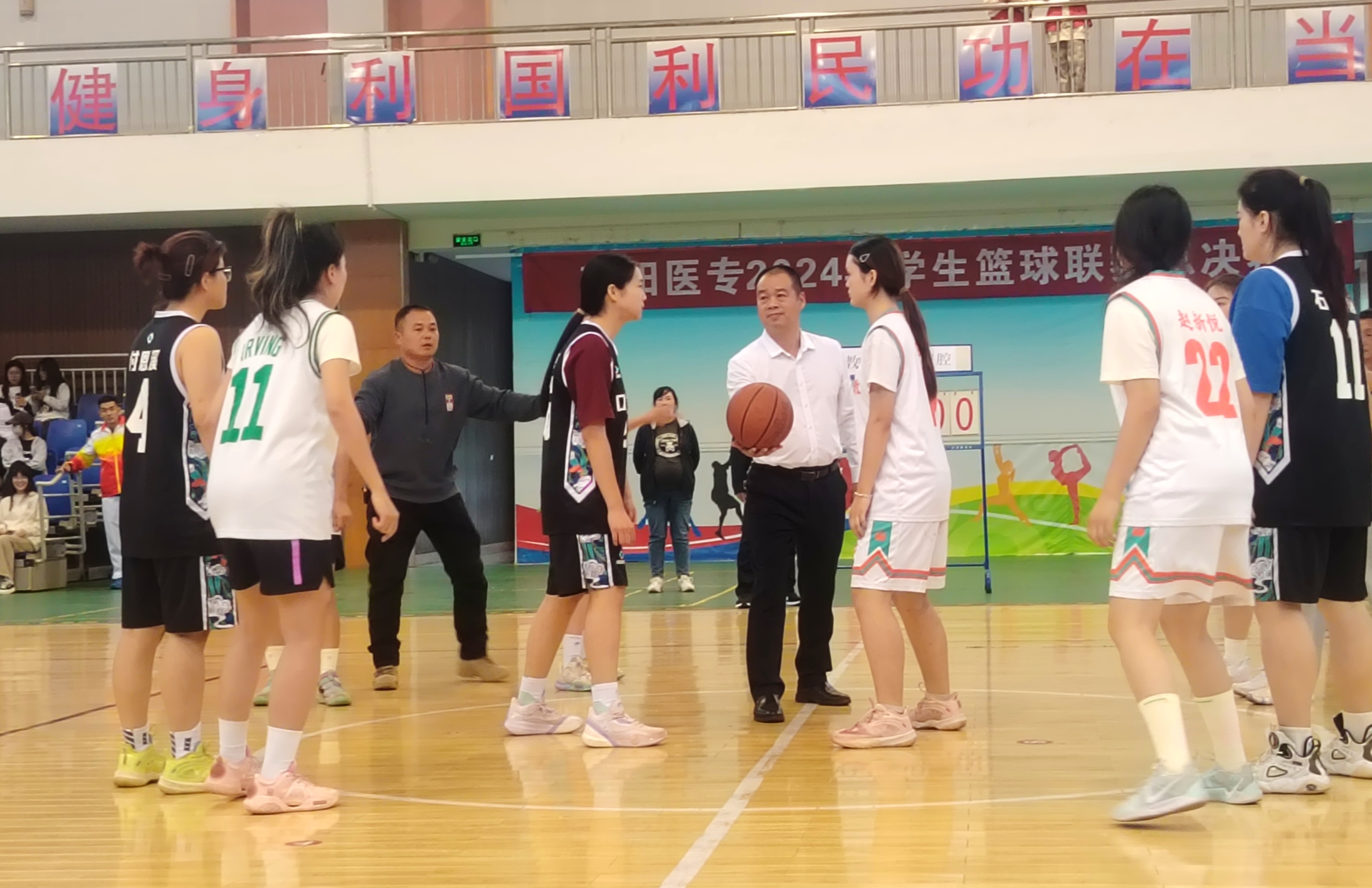 本网讯(文/体育保健与运动医学系李俊杰)2024年11月1日下午,学生篮球联赛总决赛在体育训练馆举行。校党委委员、副校长秦玖刚莅临赛场指导工作。