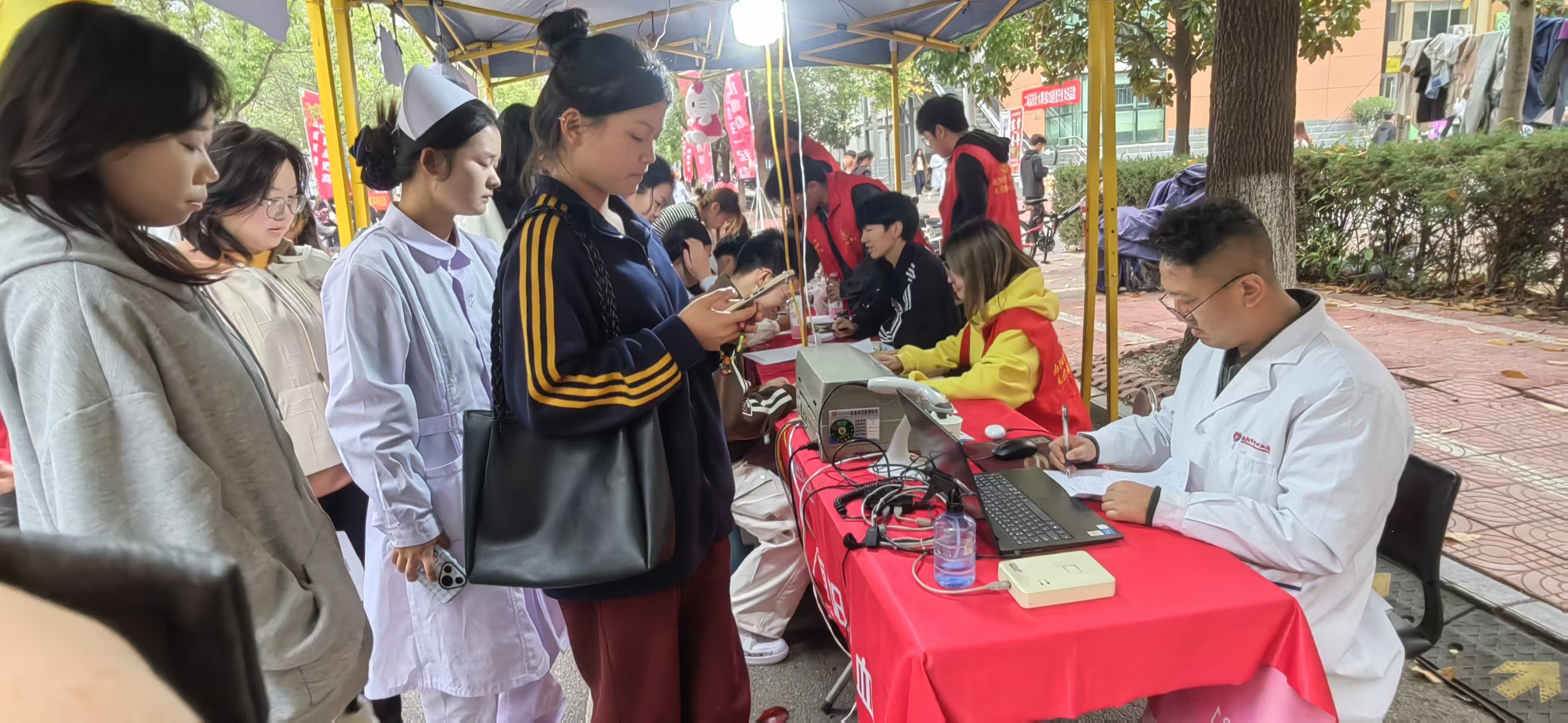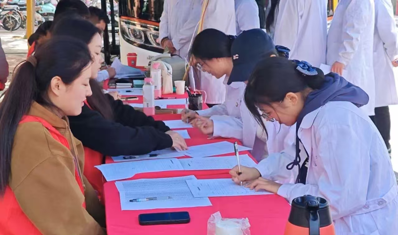 本网讯(文/学生处 胡凡)青春热血,奉献有我。为彰显南医学子的责任与担当,弘扬“奉献、友爱、互助、进步”的志愿服务精神,10月28日-11月2日,我校组织开展了“热血河南,青春力量”无偿献血活动,在校学生纷纷走上献血车,献出自己的青春热血,以实际行动践行医学生誓言。本次献血活动为期六天,覆盖三个校区,累计700余名学生参加了无偿献血。