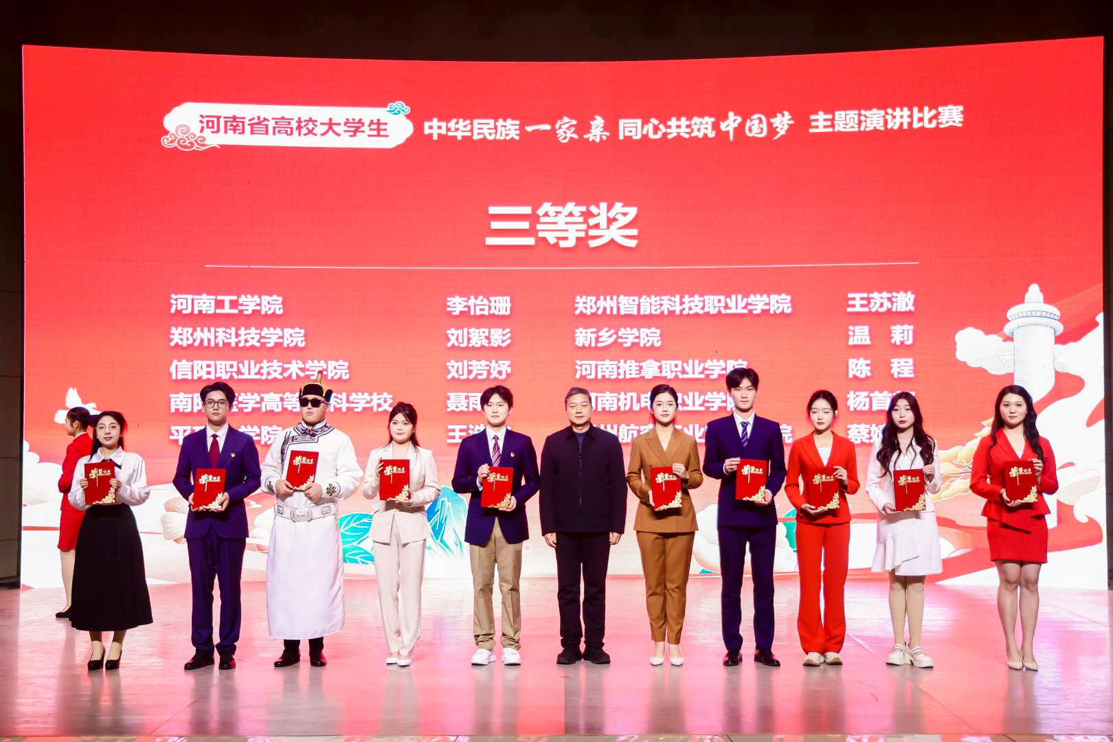 本网讯(文/统战部/李梦华国际教育学院/张建莹)12月4日,由中共河南省委教育工委、河南省教育厅主办的全省高校大学生“中华民族一家亲 同心共筑中国梦”主题演讲比赛决赛在河南师范大学举行,我校荣获三等奖。