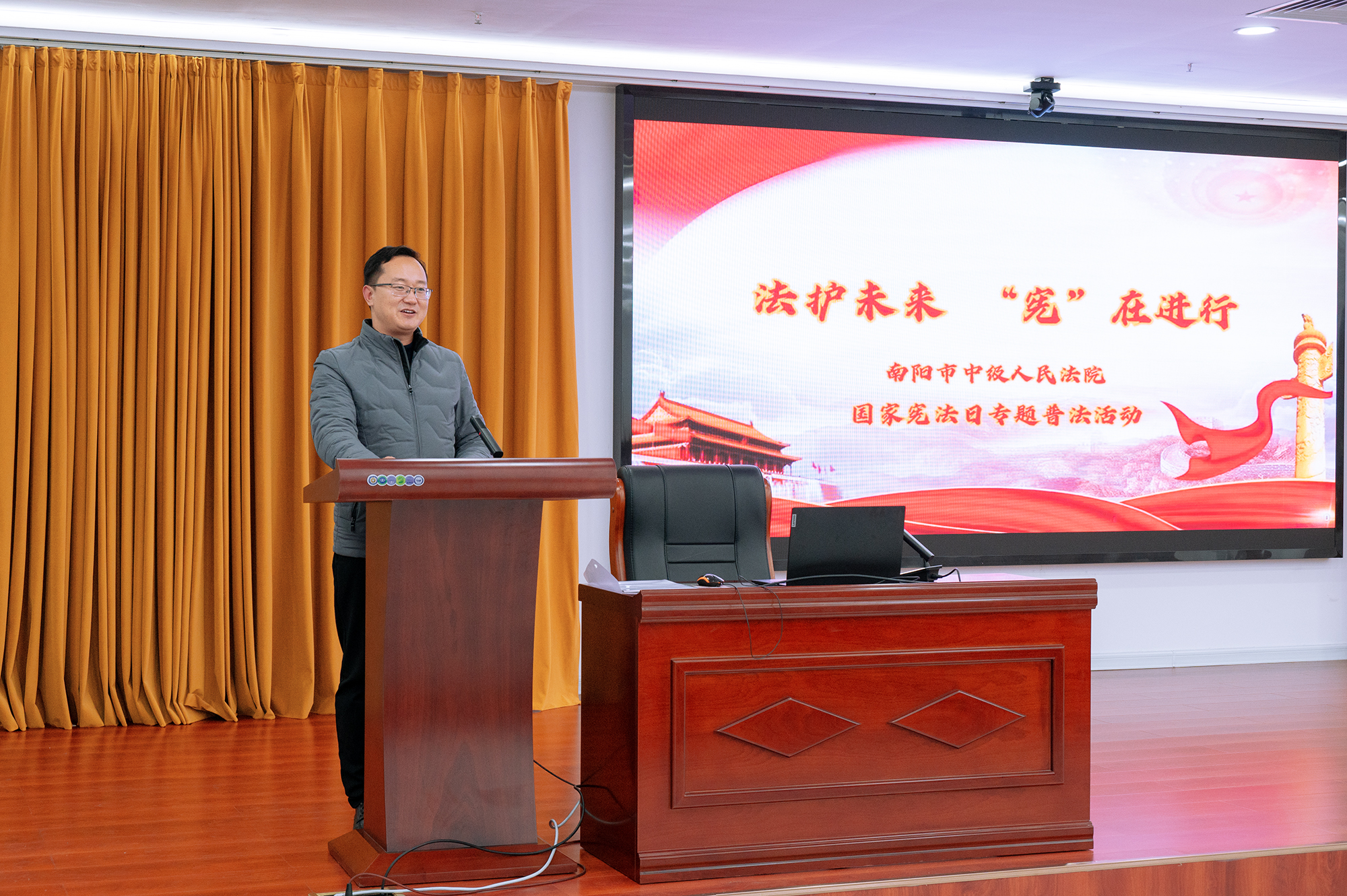 少审庭副庭长艾立以宪法为基石,为师生们开启了一扇法治之门。她以亲切的语言和生动的案例,阐述了宪法作为“根本大法”在保障公民权利、维护社会稳定中的核心作用,带领同学们发现宪法与每个人生活的紧密联系。
