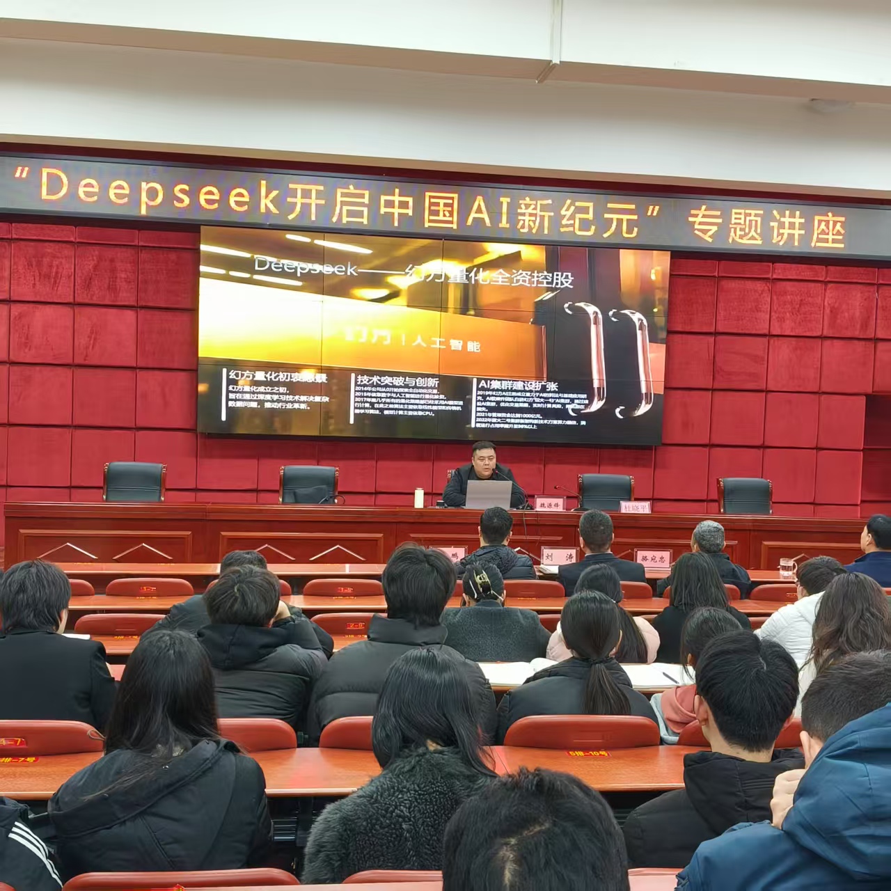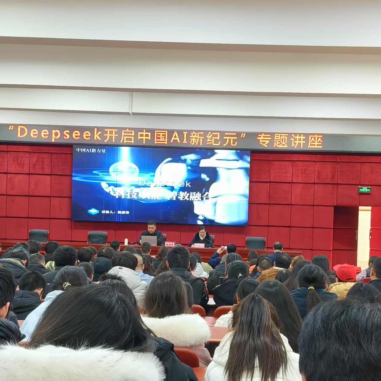 本网讯(文/工会艾 静)“春雷响,万物长”,惊蛰时节万物竞发。3月5日下午,学校在图书馆五楼报告厅举办“DeepSeek开启中国AI新纪元”专题讲座,特邀南阳市政务大数据中心高级工程师魏源锋同志主讲,校党委委员、工会主席杜晓平主持,校领导、职工代表、学生代表300余人参加培训。