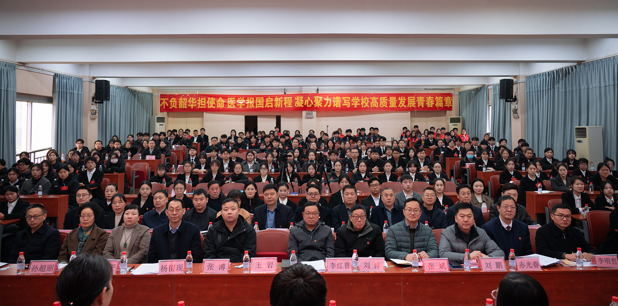 董菡同志作《青春聚力担使命,医学报国助发展》工作报告,回顾过去五年学校共青团工作的探索和成效,分析面临挑战和存在问题,明确下阶段努力方向。
