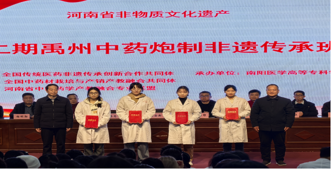本网讯(文/药学系 李玉姗)3月2日,第二期禹州中药加工炮制技艺非遗传承班在南阳医专正式开班,本次传承班由南阳医专与禹州市孙思邈医药研究院联合举办。校党委委员、副校长刘荣志,禹州市孙思邈医药研究院院长、市级非遗传承人逯安新,禹州市传统中医药文化研究院院长、市级非遗传承人黄潇,许昌市级非遗传承人、禹州市易晟药业有限公司总经理许宗辉出席,相关部门负责同志及药学系150名学员参加。