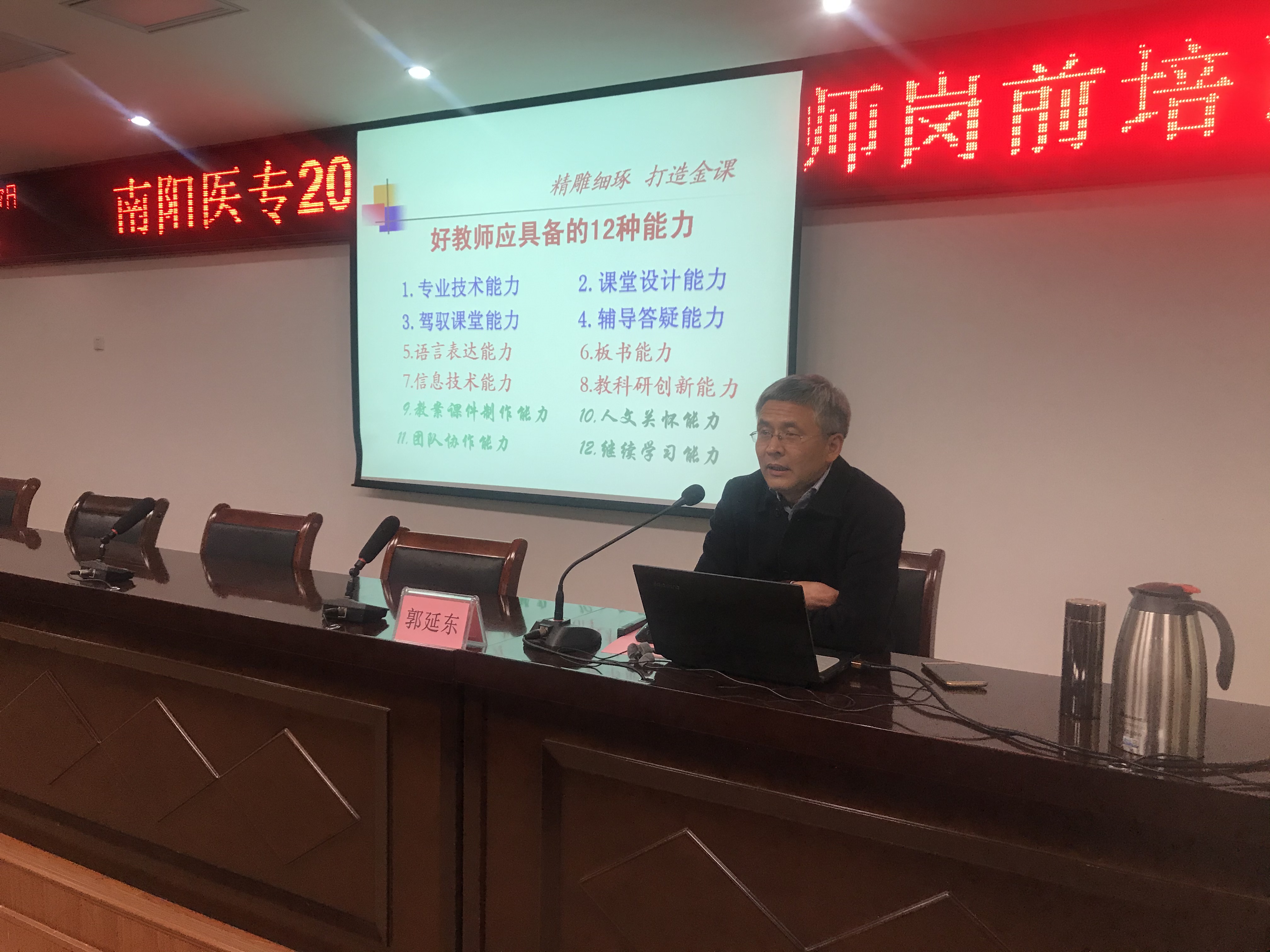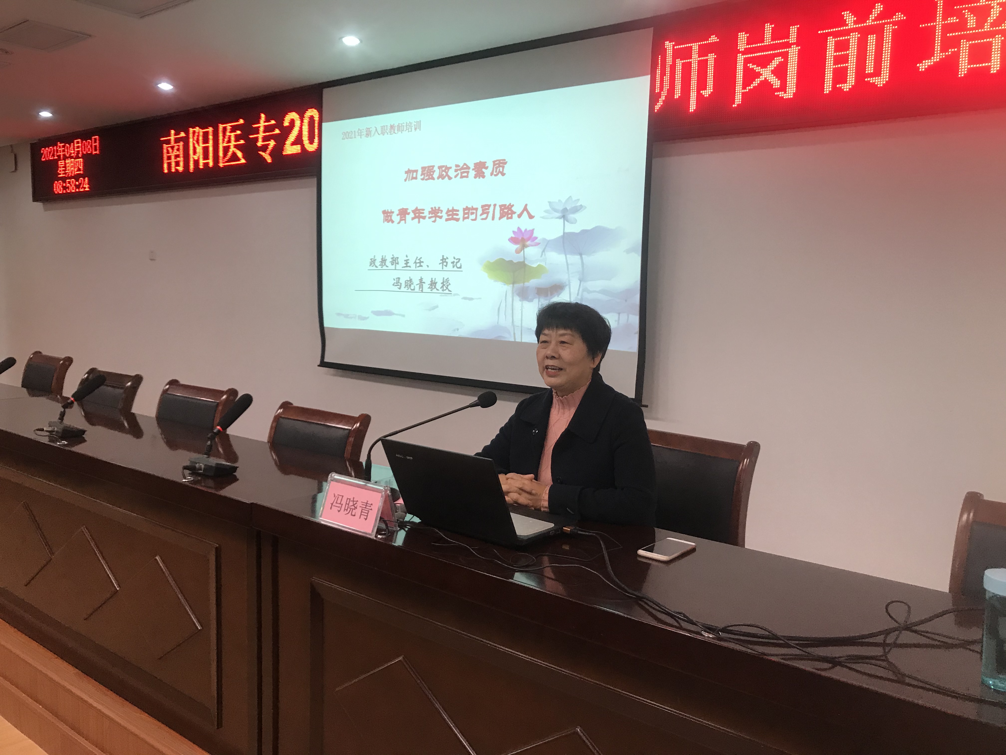会上,王海鑫副处长宣读了《培训方案》,范校长做了重要讲话。范校长代表学校向全体新进教师顺利进入南阳医专工作和生活表示热烈欢迎,勉励大家要牢记“为党育人、为国育才”的初心和使命,用习近平新时代中国特色社会主义思想铸魂育人,担当作为;要践行“学高为师、身正为范”的德操和风范,严格要求自己,不断完善自己,努力做有理想信念、有道德情操、有扎实学识、有仁爱之心的好老师;要树立“爱岗敬业、敢为人先”的理念和信心,热爱教师岗位,潜心教书育人,认真履职尽责,真正把教师职业当作事业去做,实现自我价值和社会价值的统一。