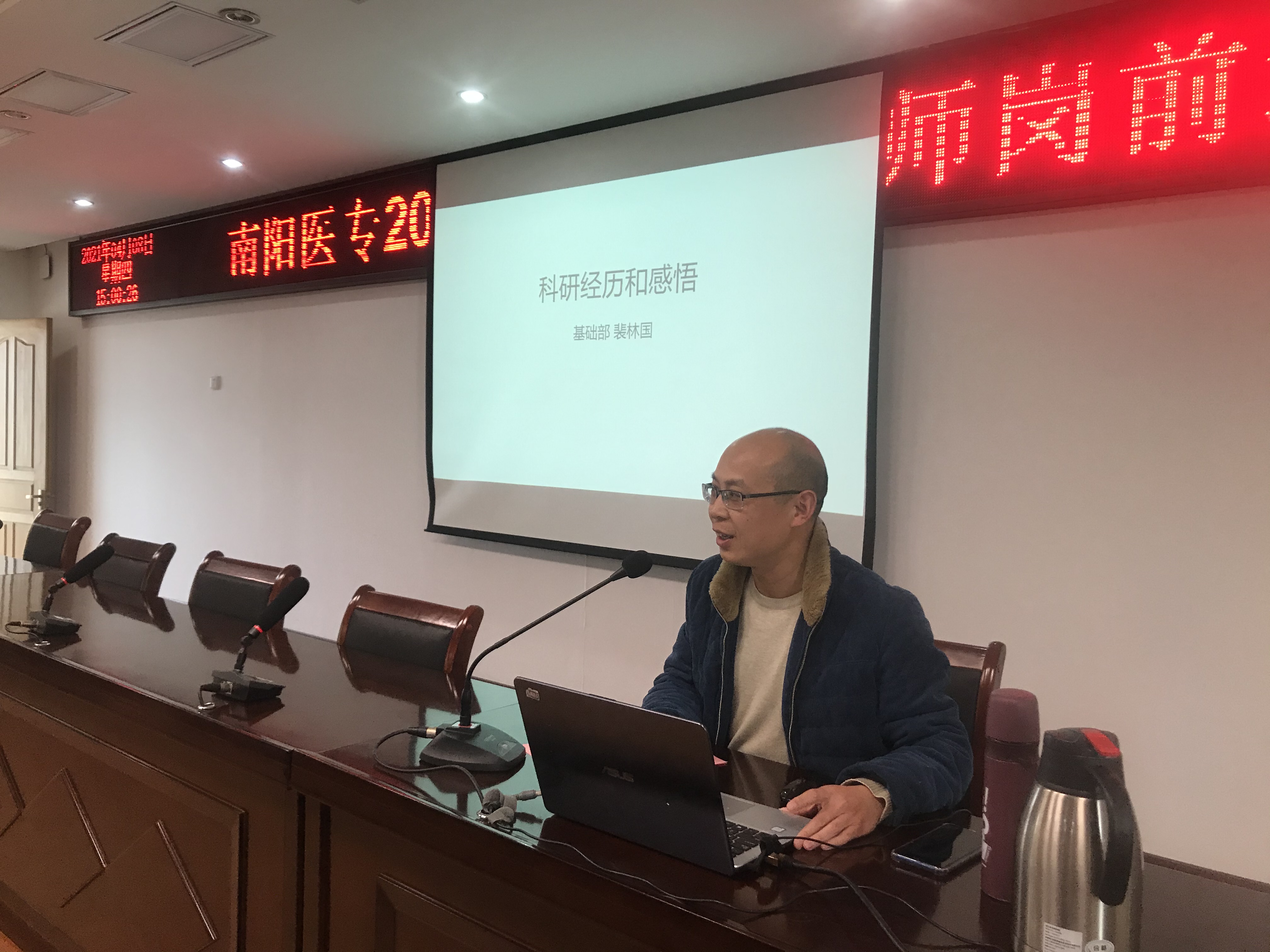 范校长首先向新教师们介绍了学校概况、校园文化、学校机构设置、师资队伍建设、专业建设等情况,并殷切希望全体教师争做习近平总书记要求的有理想信念、有道德情操、有扎实学识、有仁爱之心的“四有”好老师,做政治素质过硬、业务能力精湛、育人水平高超的高素质教师,传承师道,立德树人,以实际行动为教育事业奉献终身!随后的几天里,教务处处长刘荣志,高等医学教育研究室主任郭延东,政治理论教学部主任冯晓青,学生处副处长余飞海,一线教师裴林国博士等分别对新入职教师进行了专题讲座,内容包含了生命科学教育、“双高”校建设解读、教学质量提升、思想政治教育、学生管理工作、科研发展路径等。