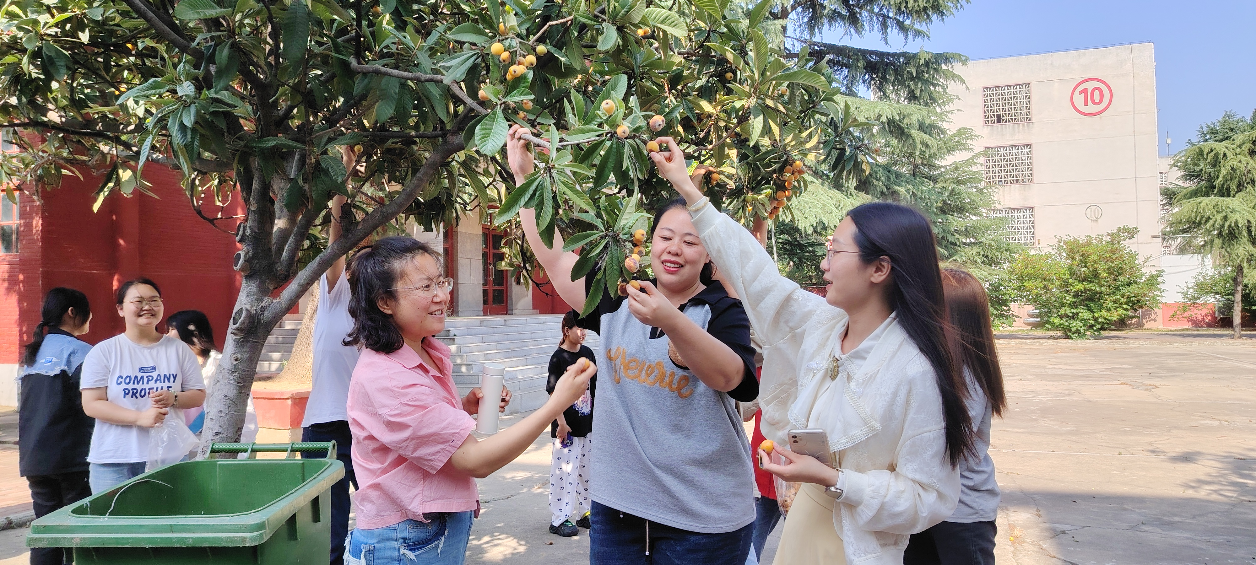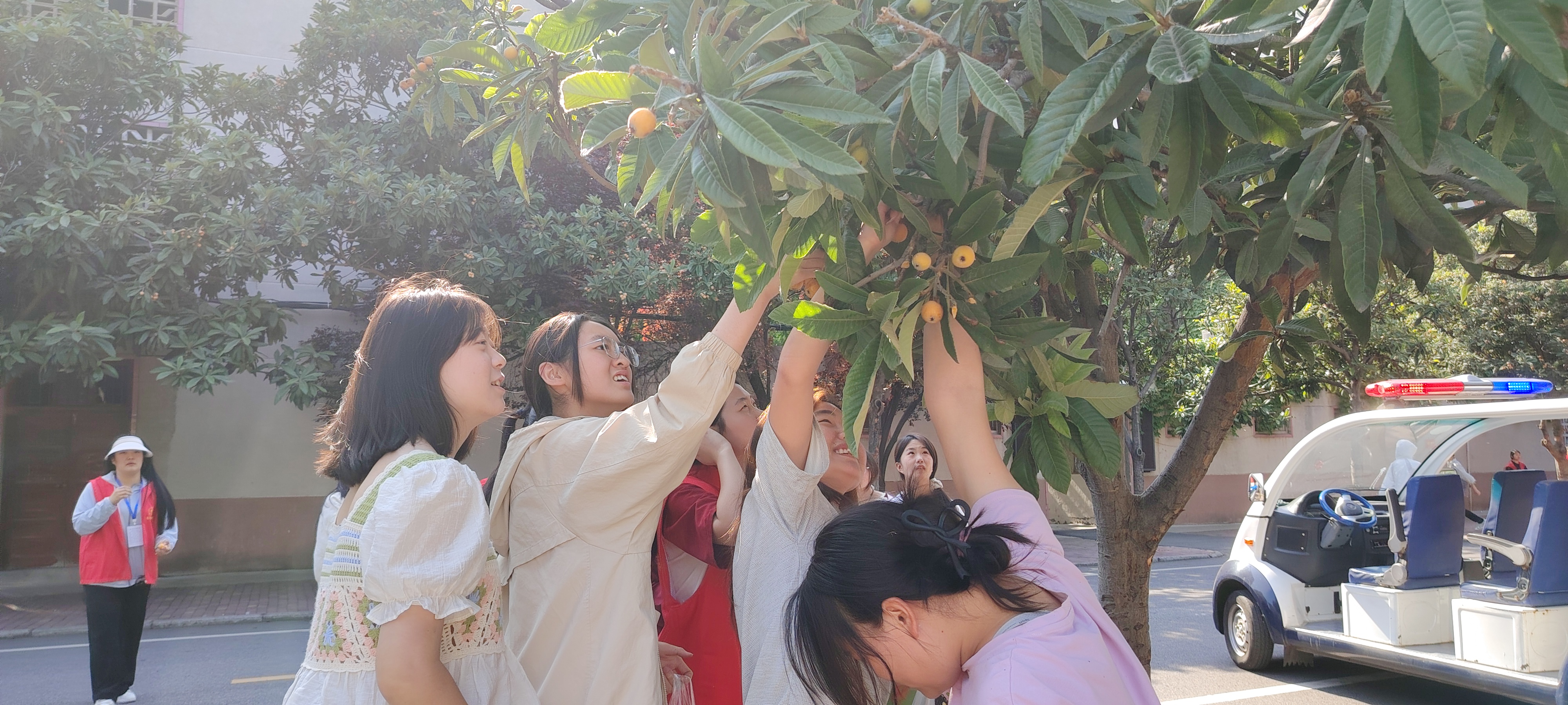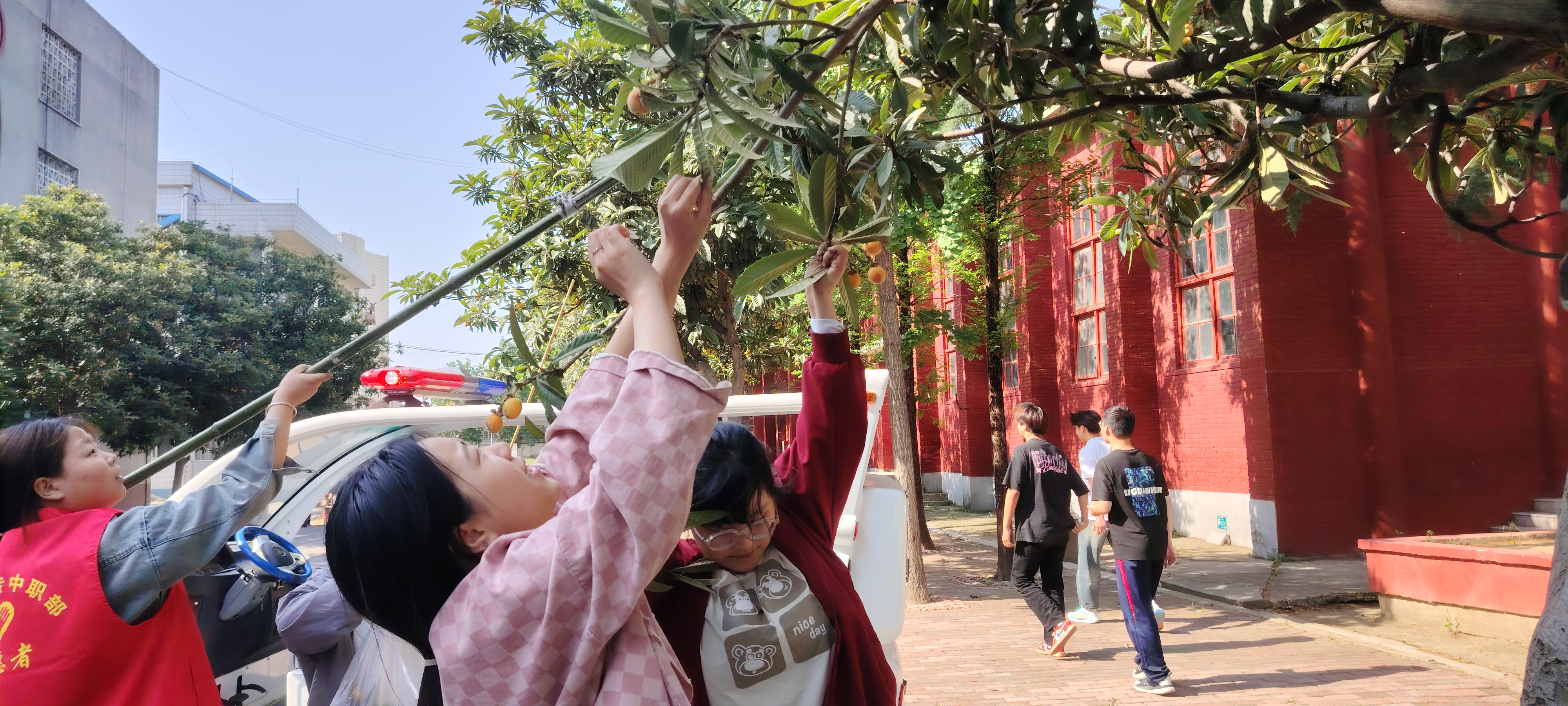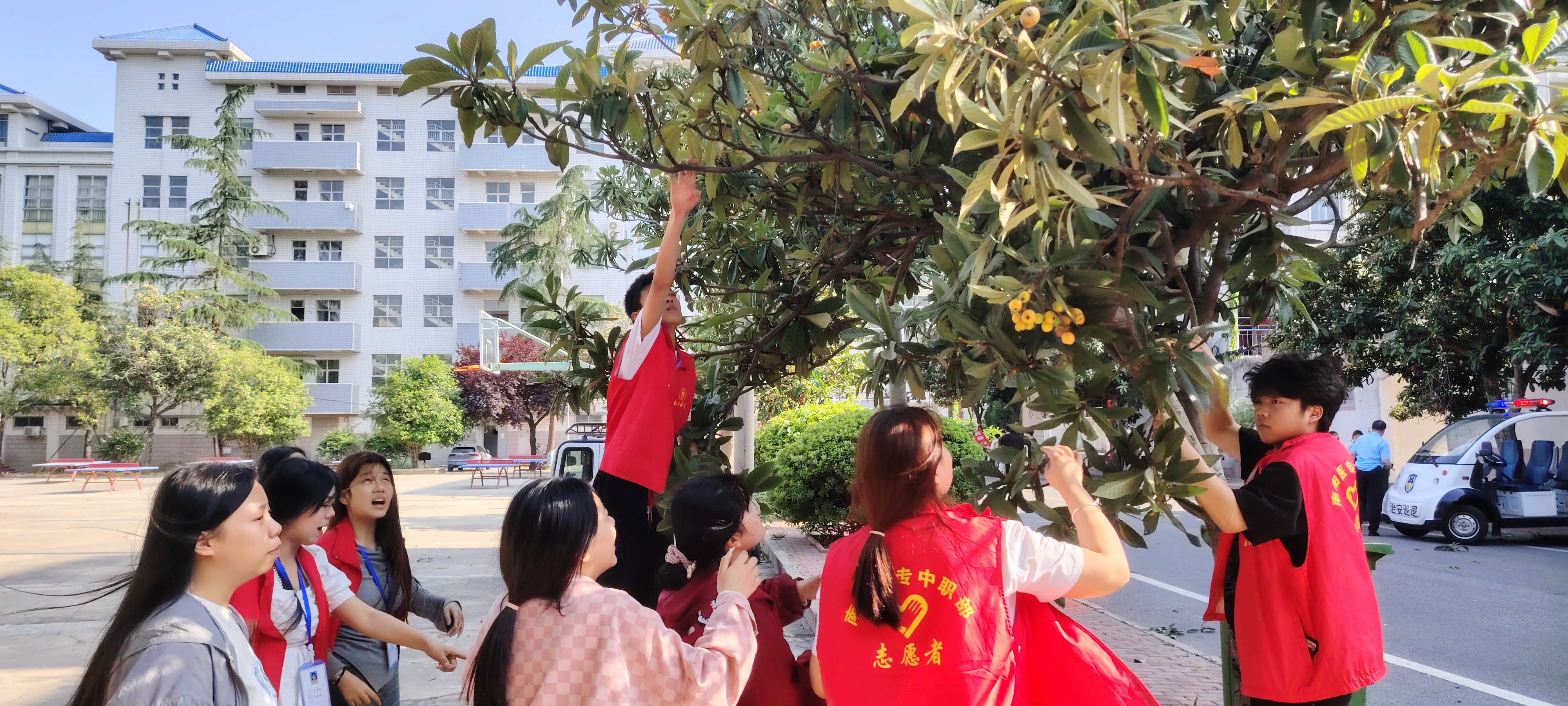 在自由采摘环节,师生们纷纷拿着采摘工具,肆意穿梭在茂密的枇杷树下,采摘着颗颗金黄饱满的枇杷;有的直接在现场大快朵颐,一口下去,丝丝甜味沁人心脾,为味蕾和身体注入一份愉悦与活力。志愿者将采摘的枇杷送给保安、宿管阿姨、楼管叔叔等这些最可爱的人,以文明采摘和品尝向劳动致敬,让一颗颗枇杷甜在口中、乐在心头。