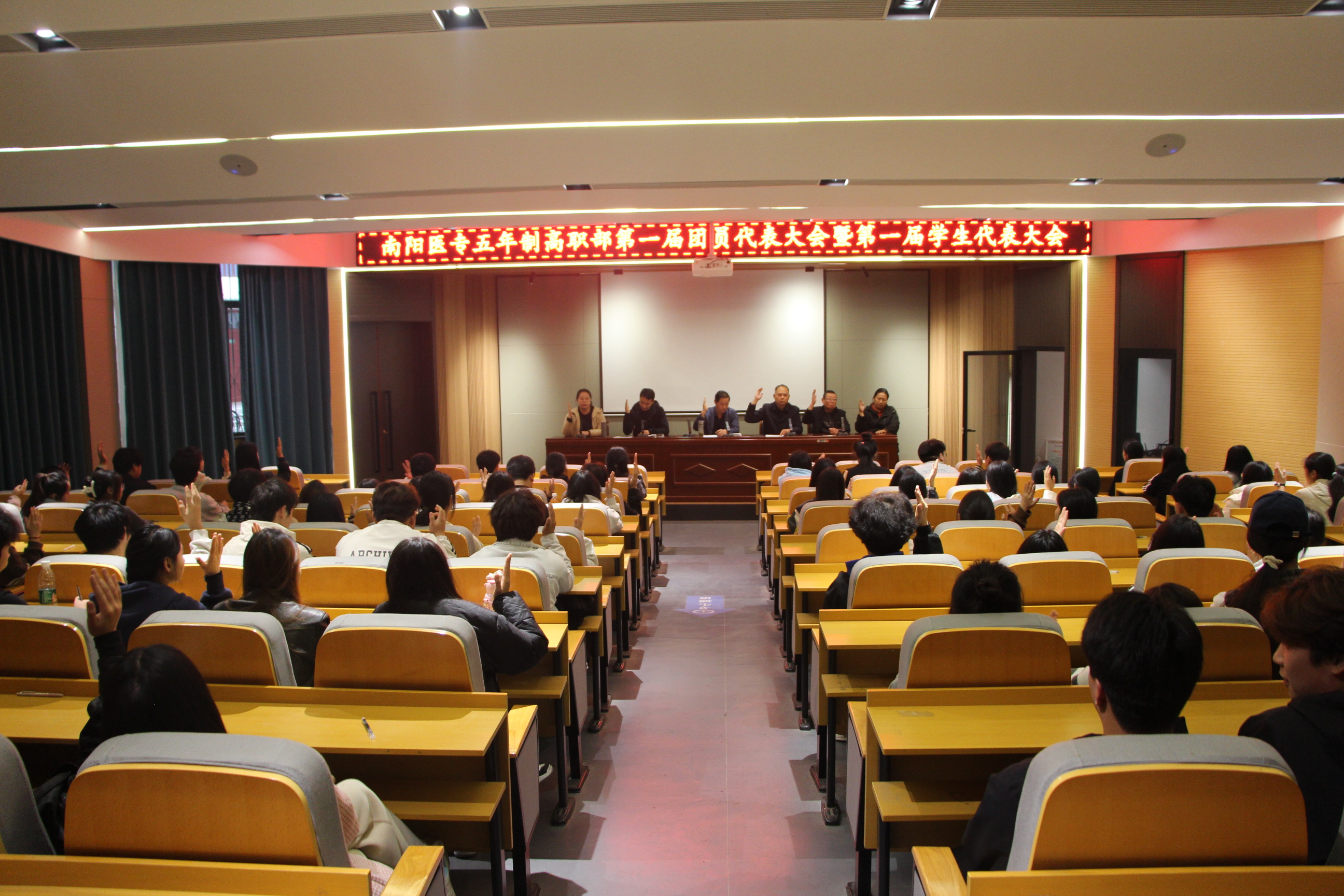 在庄严肃穆的国歌声中全体肃立,大会正式拉开帷幕。大会听取和审议通过了《南阳医专五年制高职部团总支委员会委员候选人产生办法及选举办法》、《南阳医专五年制高职部学生会主席团成员候选人产生办法及选举办法》;全体举手表决通过了会议总监票、监票人、计票人名单及团支部委员会委员、学生会主席团成员候选人预备人选名单。