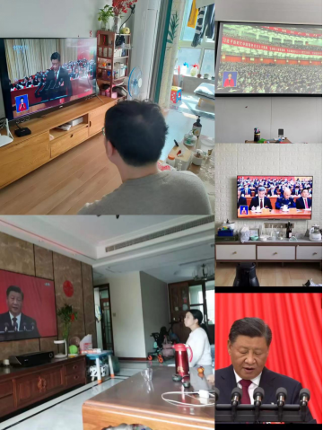居家办公的老师们也都准时等候在电视机旁,迎接二十大开幕盛会。
