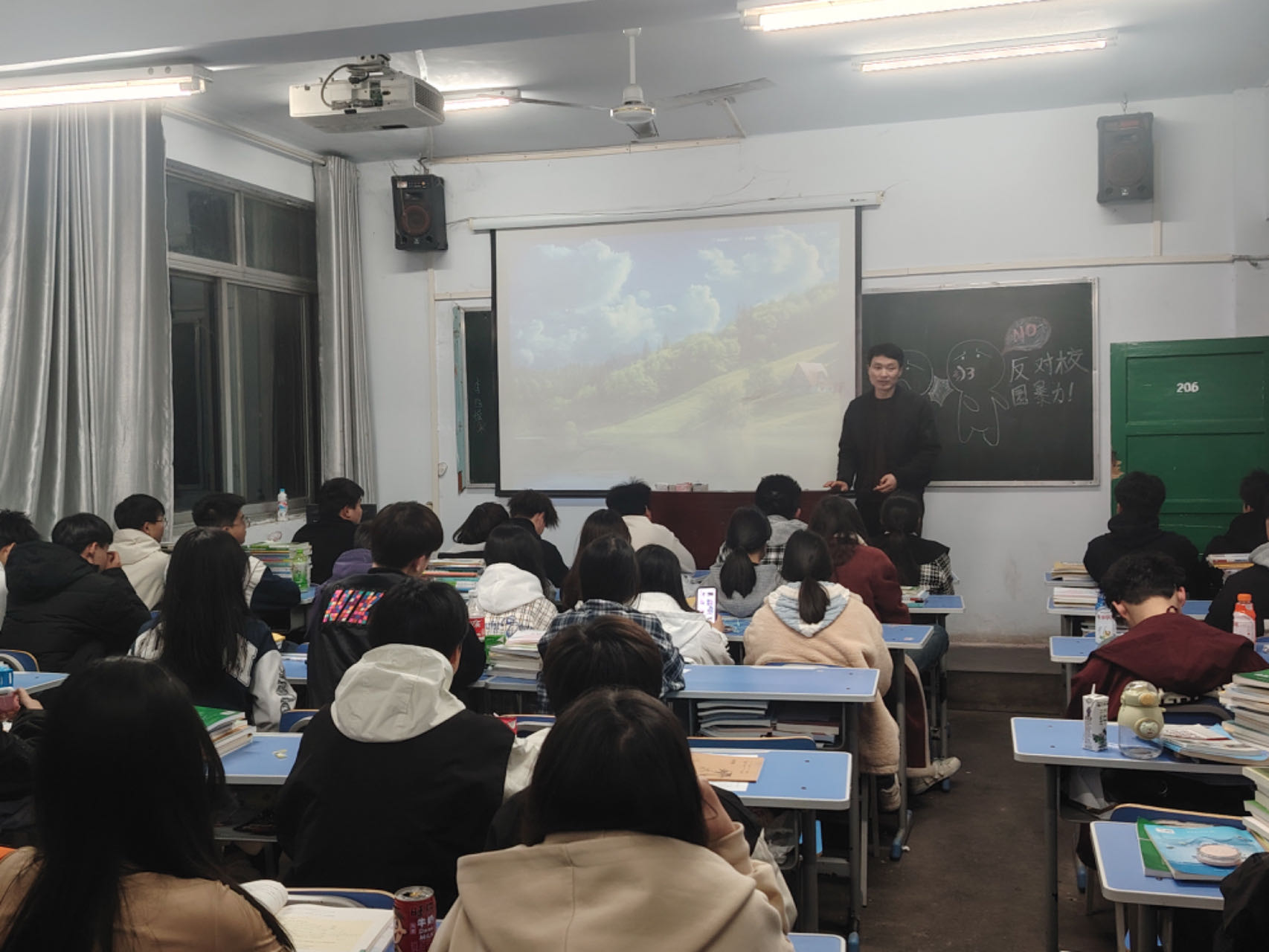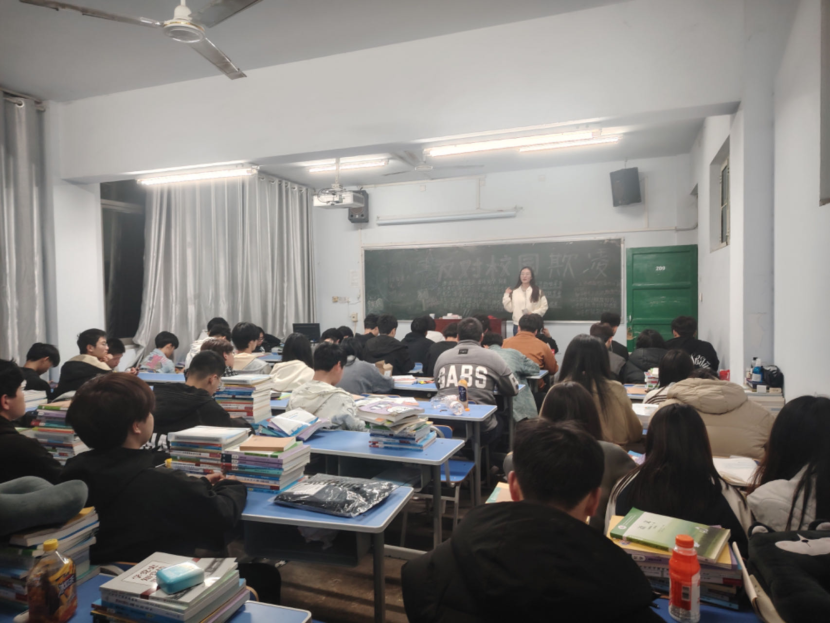开展主题班会,增强育人效果。3月20日晚,全体辅导员利用晚自习时间进班开防校园欺凌主题班会,各班通过观看PPT、视频等使学生充分了解到校园欺凌的严重危害,懂得严格约束自己,杜绝欺凌弱小群体。辅导员向学生讲解了有关校园欺凌的知识,引导学生当自己的安全受到威胁时,敢于发声,要沉着冷静,不以暴制暴,防止事态恶化,教育学生团结合作,互帮互助,和睦相处,形成积极向上、良好和谐的班风。