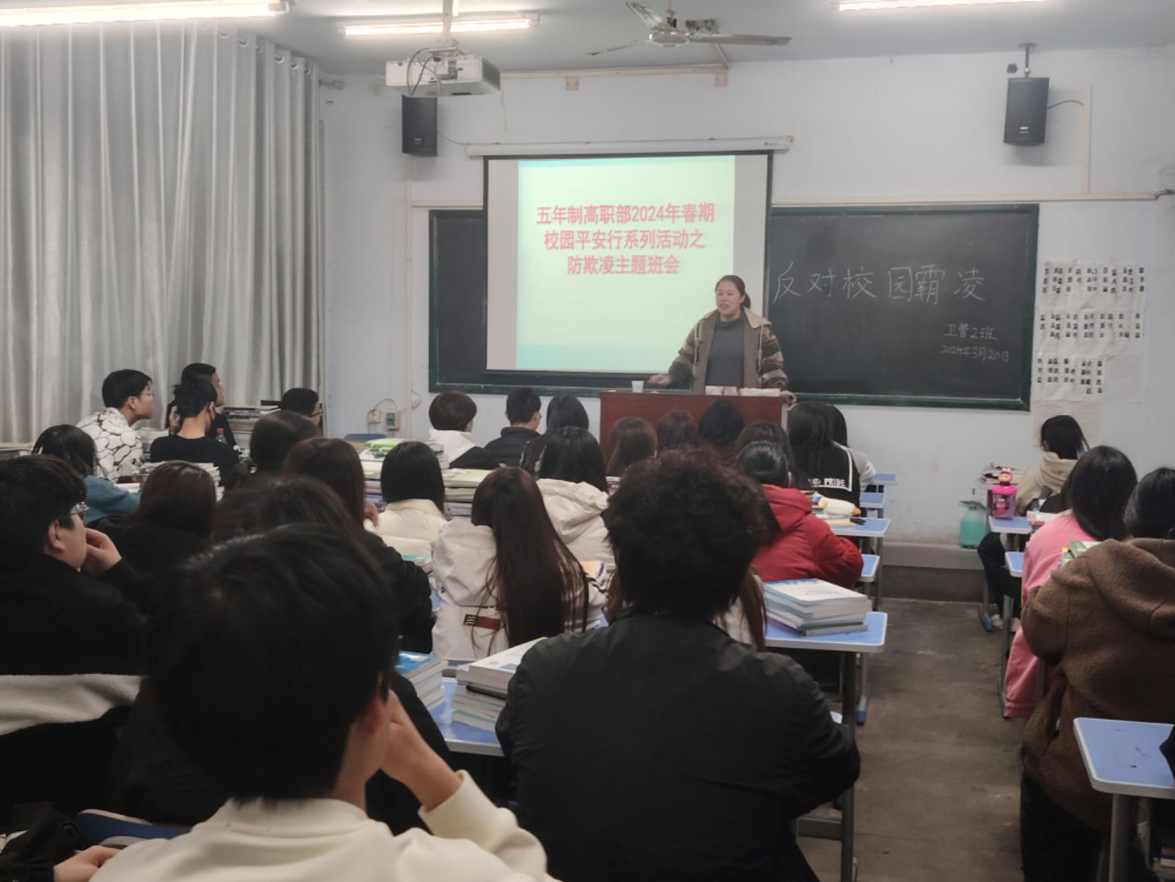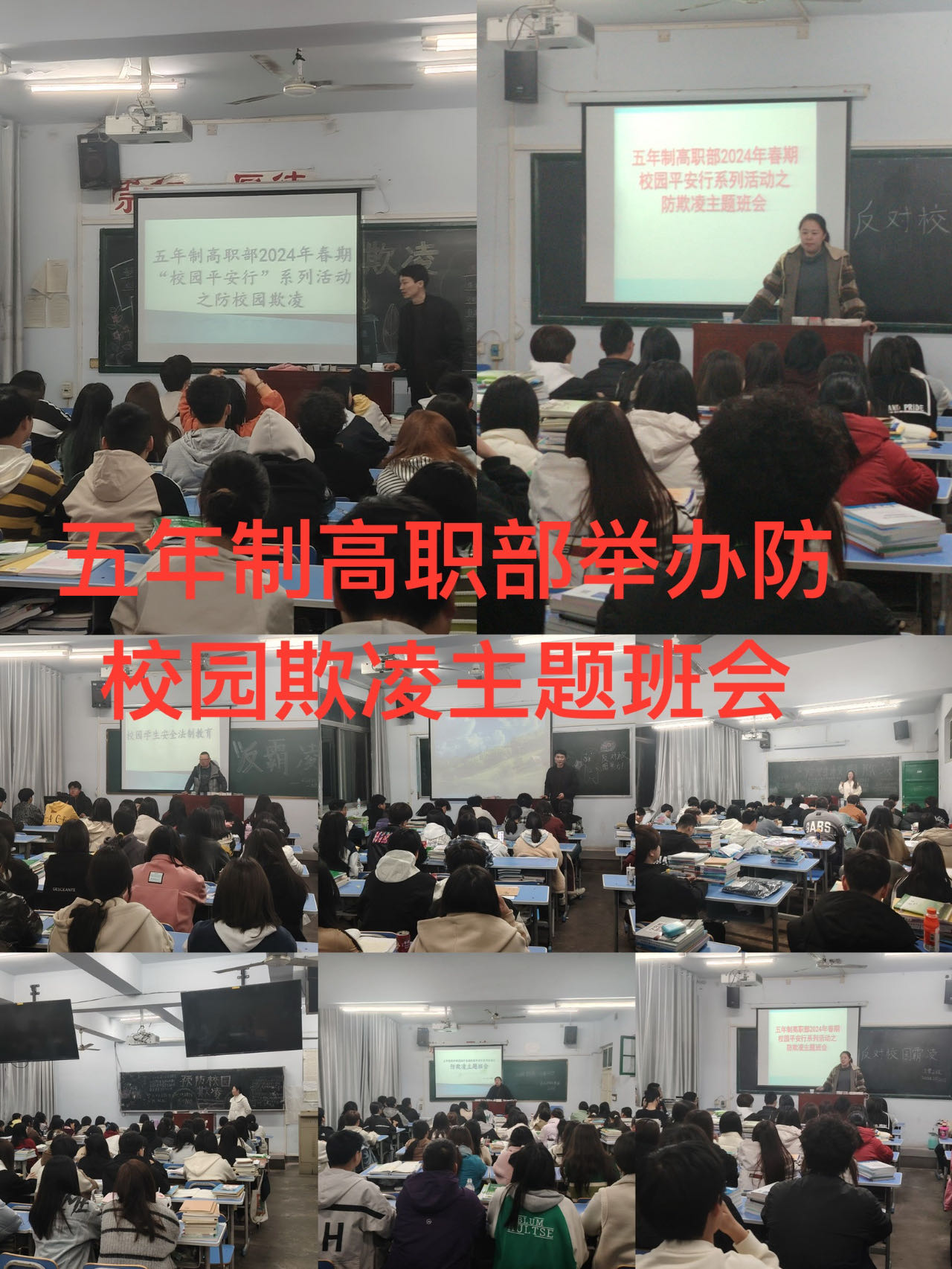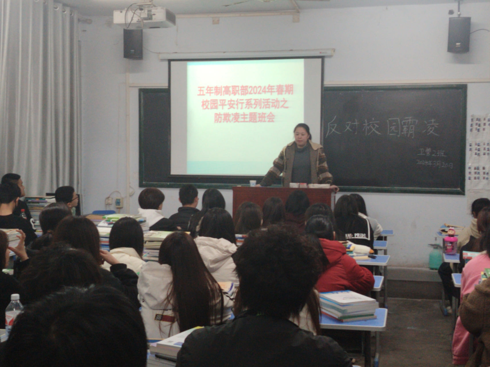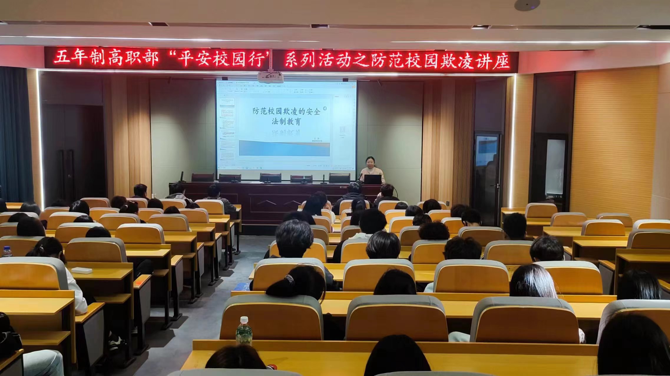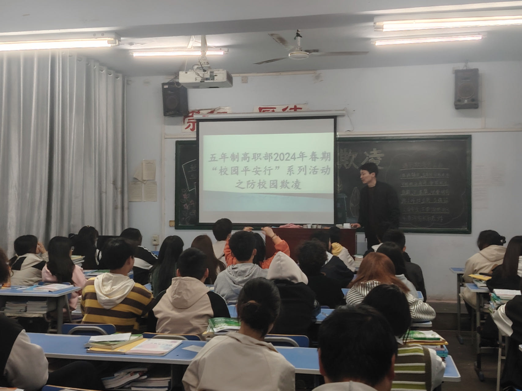 五年制高职部高度重视防欺凌教育工作,将法律法规教育与心理健康辅导融会贯通,开展一系列“防校园欺凌”主题活动,力求让学生能够了解校园欺凌的危害性,学会如何预防和应对校园欺凌,把校园防欺凌意识根植学生心中,增强自我保护意识,构筑家校社网全方位防欺凌安全屏障。
