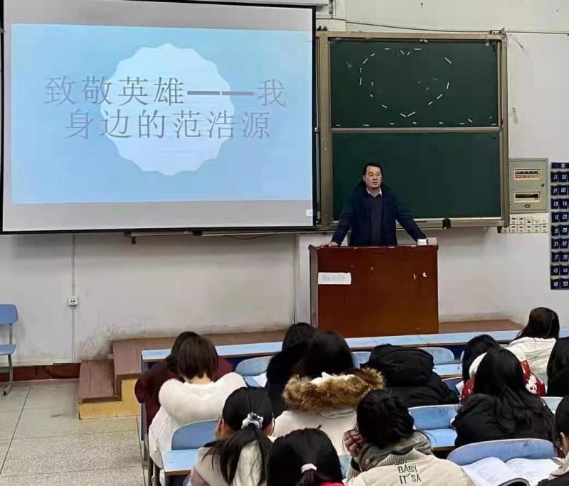 中央电视台新闻联播报道范浩源事迹当天,校党委学工部发出了向先进学习的号召。我系党总支迅速响应,立即组织全系青年学生当天晚自习时间集体收看新闻报道,学习优秀仲景学子范浩源的先进模范事迹,书写心得体会,全面开展向身边模范学习,展青春使命担当的热潮。
