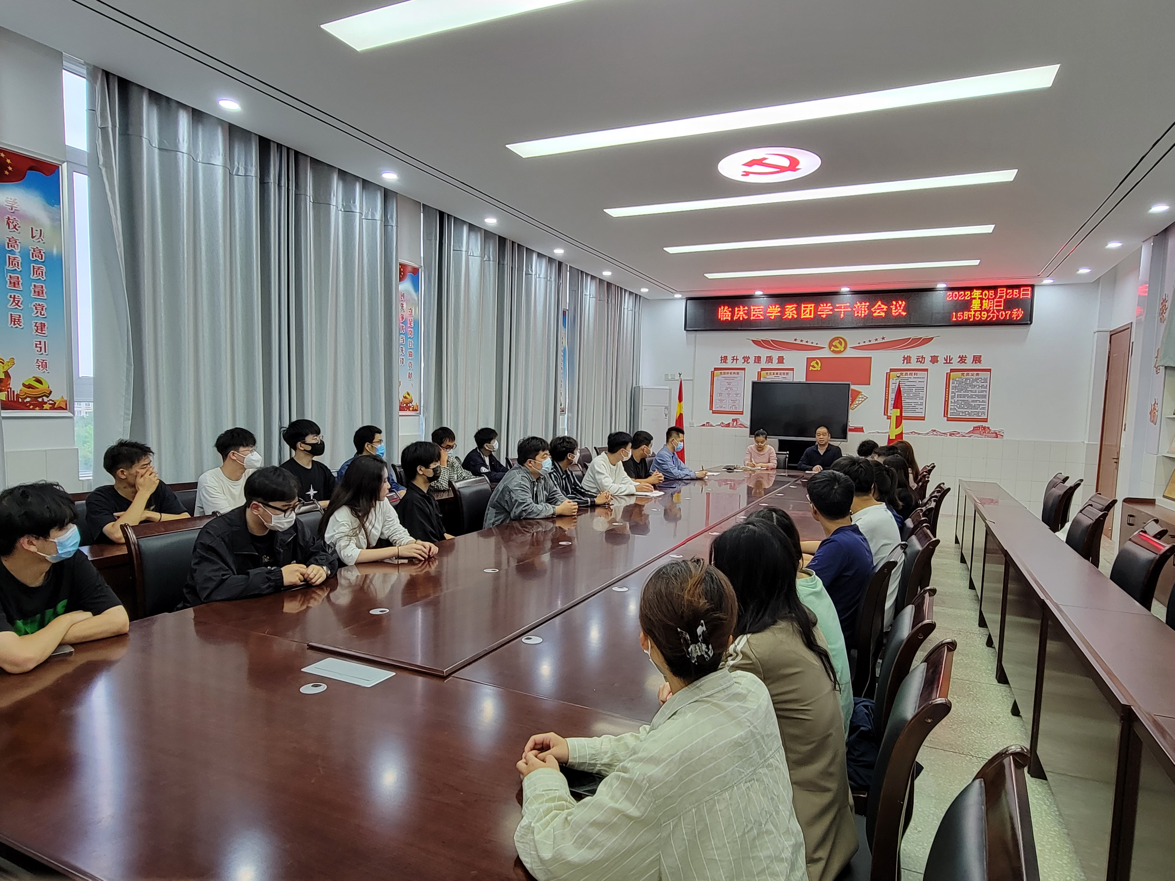 2022年8月28日下午,临床医学系召开团学干部开学动员会,系党总支书记秦玖刚、系学工办主任王川和学生会成员、各班班长等参加会议。
