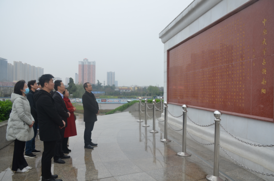 大家在解放纪念碑前鞠躬默哀,深切悼念革命先烈。依次向纪念碑敬献鲜花,一同诵读了毛泽东同志的名篇《中原我军占领南阳》。
