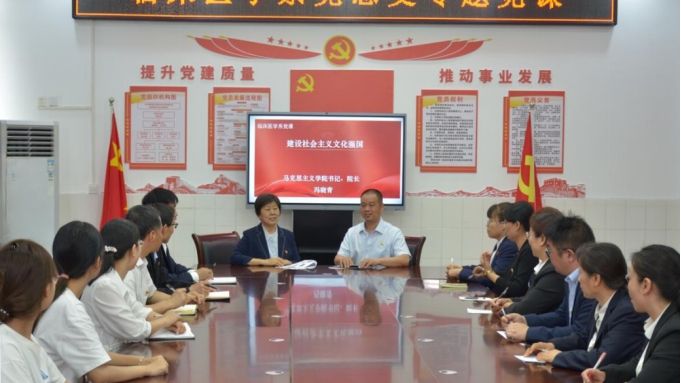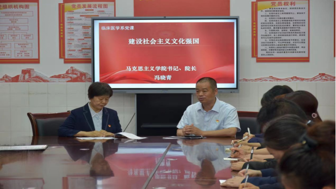 6月9日,我校马克思主义学院院长冯晓青教授应邀到临床医学系开展以“建设社会主义文化强国”为主题的访谈式党课,临床医学系党总支书记秦玖刚主持,我系全体党员教师和部分学生代表参加。