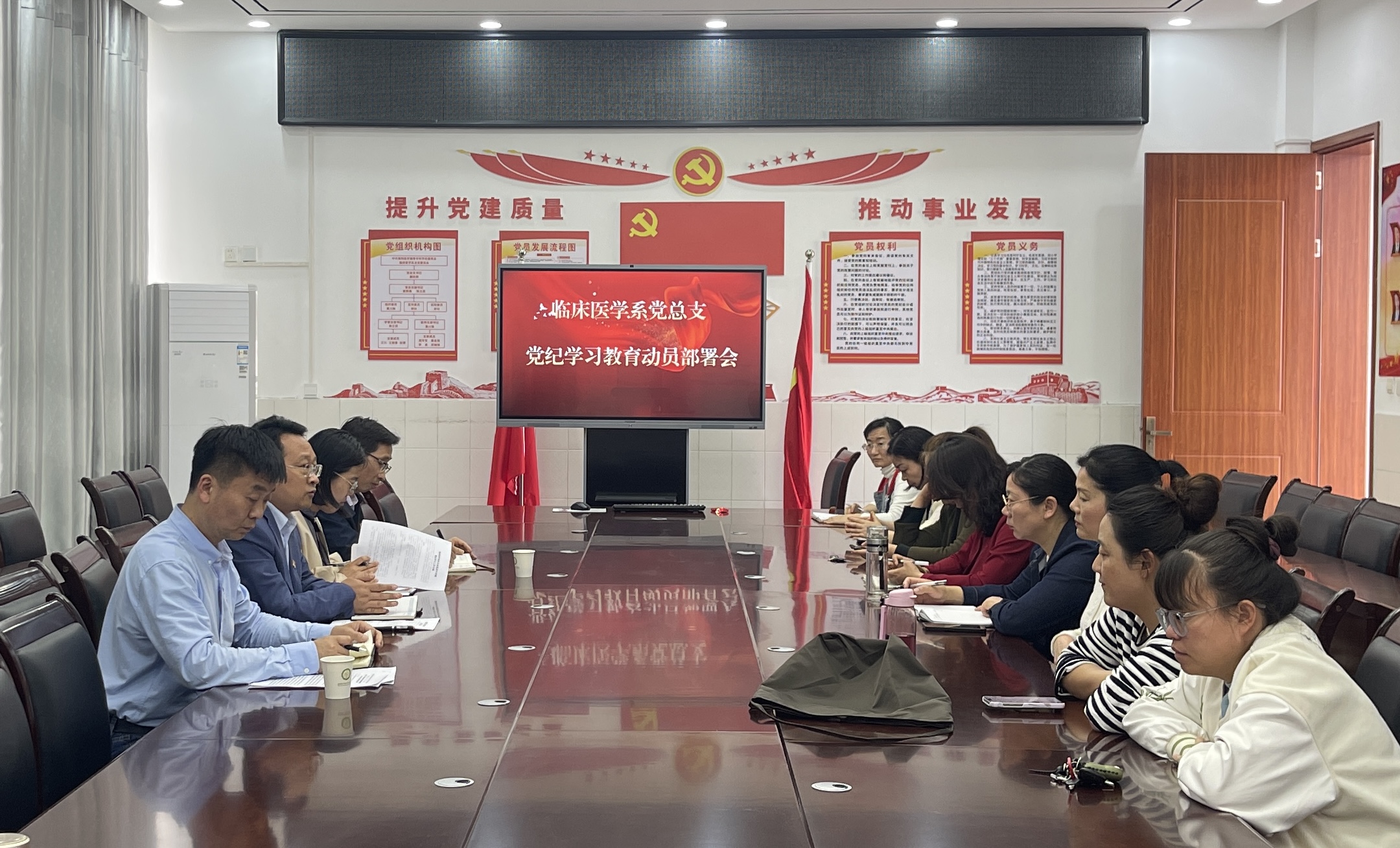 4月17日下午,临床医学系党总支召开党纪学习教育动员部署会,贯彻落实南阳医专党委(扩大)会议精神,对党纪学习教育进行动员部署,全体党员参会。会议由总支书记宗山林主持。