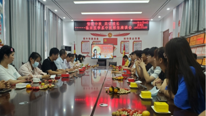 月到中秋分外明,又是一年团圆日。9月9日下午,在中秋节和教师节即将来临之际,临床医学系在党员活动室举行以“情暖中秋 共话成长”为主题的中秋师生座谈会,师生欢聚一堂共庆佳节。系党总支书记秦玖刚等系领导、新老生辅导员和班主任以及40余名学生代表参加。