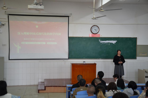 2023年3月14日下午,临床医学系师生党支部联合开展专题党课,邀请党的二十大精神学校宣讲团成员、马克思主义学院副院长何义霞副教授,为师生党员做党的二十大精神辅导报告。