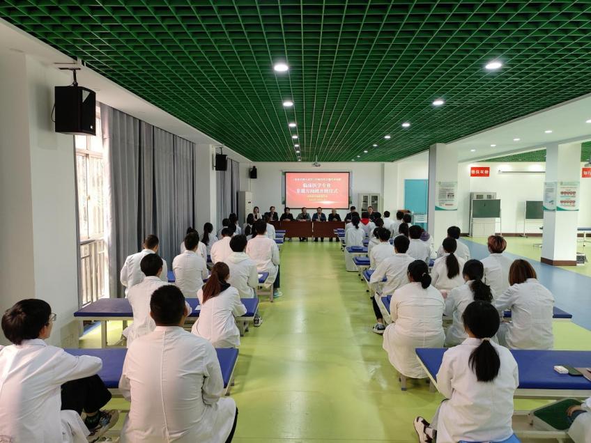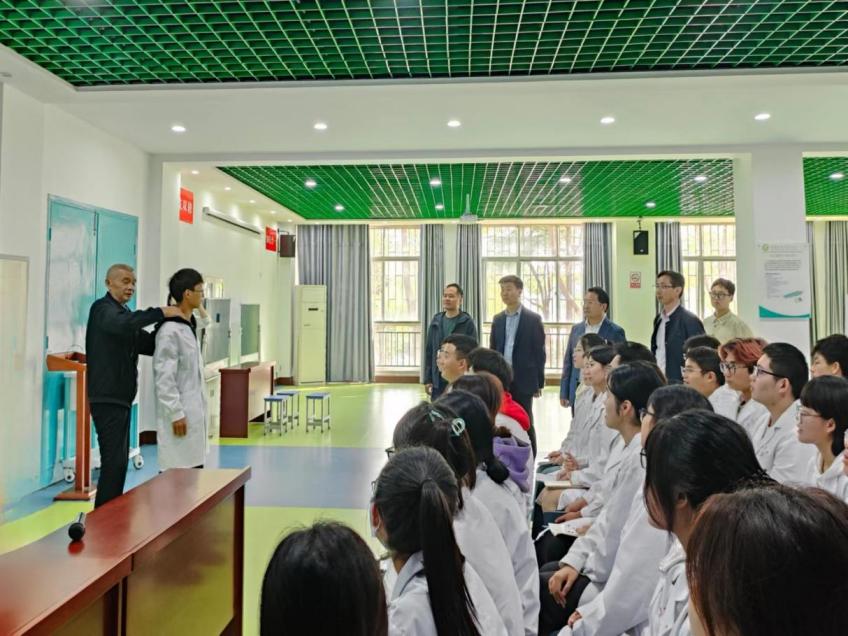 2023年10月11日下午,我校临床医学专业非遗方向班开班仪式在实验楼急救技能训练中心举行。南阳市“胡氏捻筋”非遗传承人胡胜军、刘书萍老师,教务处副处长张峰,临床医学系党总支书记宗山林、副主任周毕军、张铮,非遗方向班班主任刘宛丽及该班50名同学参加。开班仪式由临床医学系常务副主任黄川锋主持。