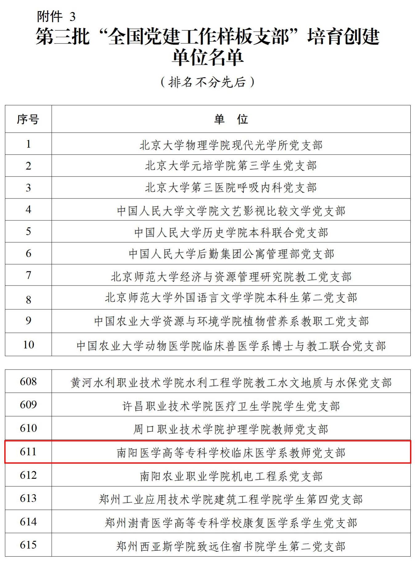 3月18日,教育部办公厅公布第三批全国党建工作示范高校、标杆院系、样板支部培育创建单位名单(教思政厅函〔2022〕4 号),我校临床医学系教师党支部荣获“全国党建工作样板支部”。