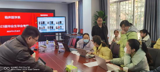 为全面检测实习生对专业理论知识和技能的掌握情况,进一步提高执业助理医师考试通过率,贯彻教务处通知要求,临床医学系于2月26日上午9点半举行了2023届毕业生线上毕业考核。为确保考试顺利进行,系领导高度重视,组织召开考务工作会,对相关工作进行了具体安排。会议由临床系书记秦玖刚主持,教务办、学工办主要负责人及全体监考教师参会。