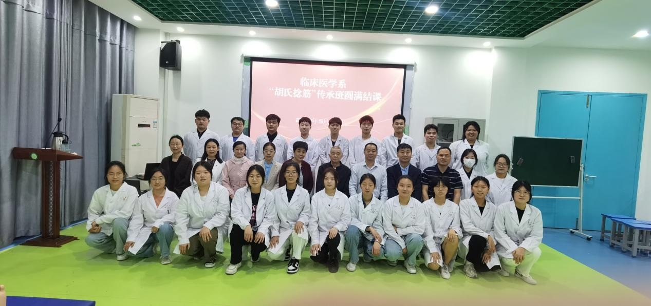 传统医学是“祖先留给我们的宝贵财富”,是“中华民族的瑰宝”,是“打开中华文明宝库的钥匙”。2023年5月21日,临床医学系第一期“胡氏捻筋传承班”结课仪式在实验楼急救中心举行,临床系党总支书记秦玖刚、常务副主任兼教师党支部书记黄川锋、系副书记王川等领导和传承班的师生们参加活动。