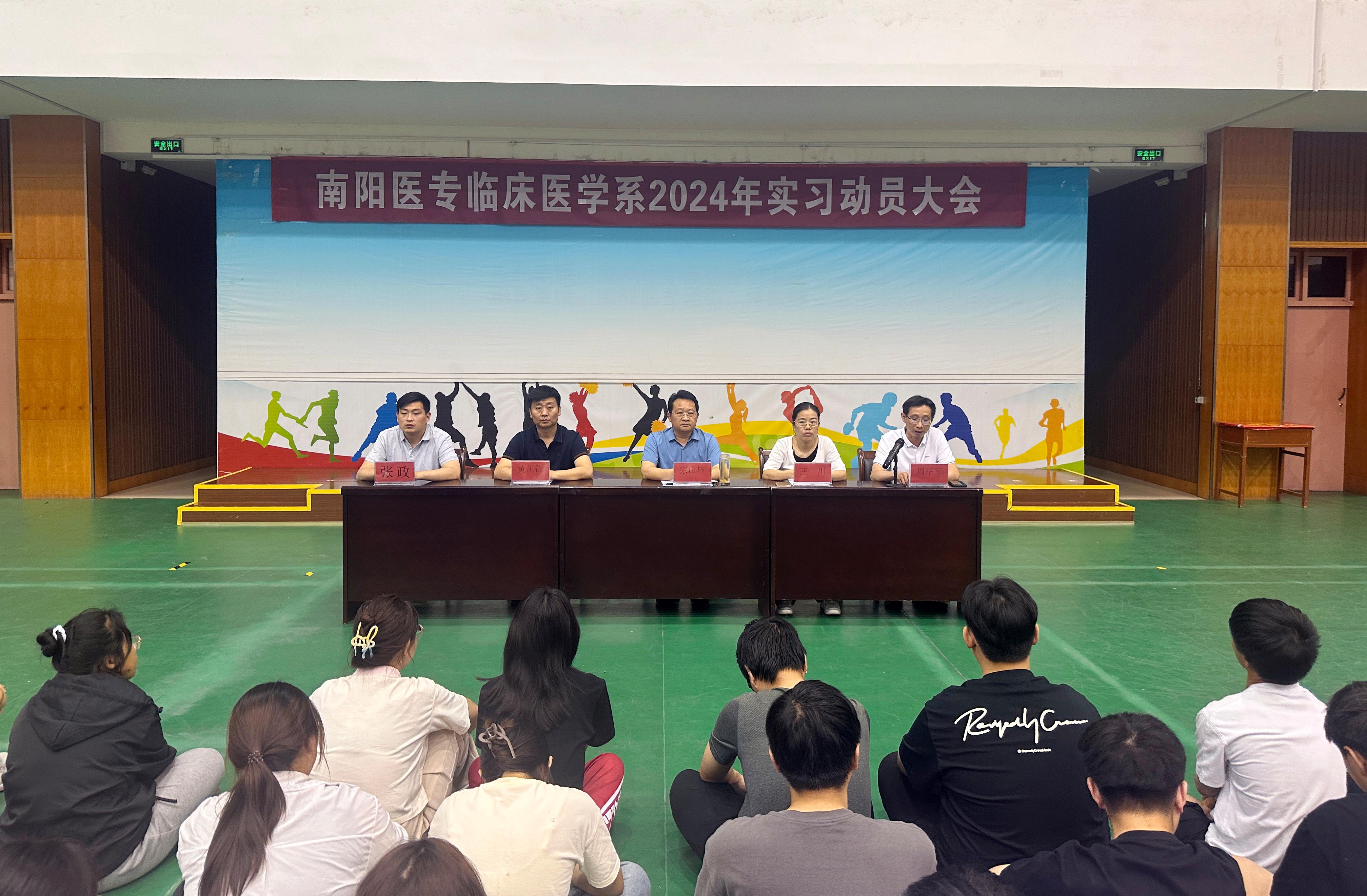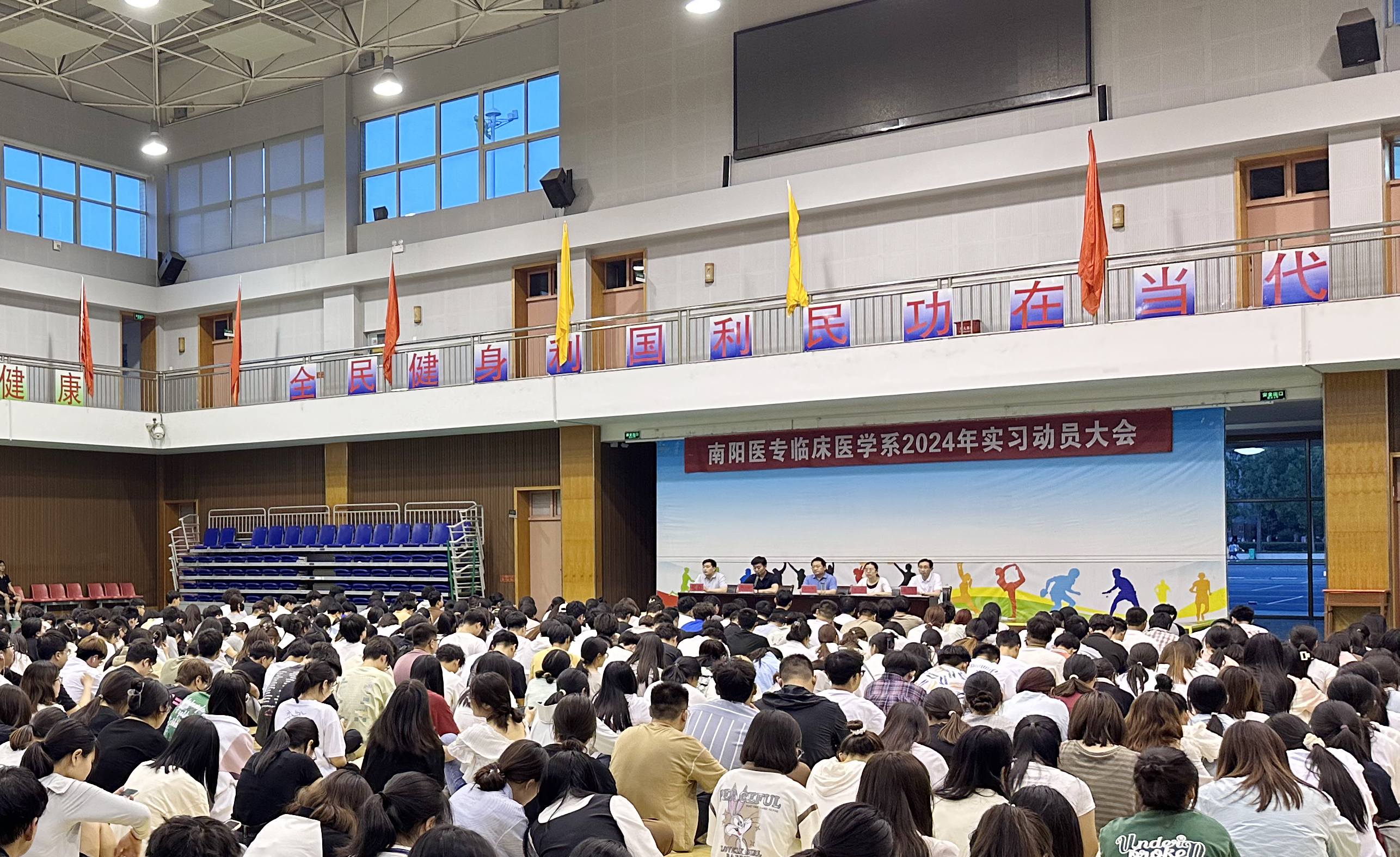 为深入推进学生实习教育工作,帮助学生树立正确实习观念,明确实习目标,2024年5月13日晚在仲景西区体育馆召开南阳医专临床医学系2024年实习动员大会,系党总支书记宗山林,常务副主任黄川锋,党总支副书记王川,副主任周毕军,学工办主任张政,2022级全体学生及辅导员老师参加会议,会议由常务副主任黄川锋主持。