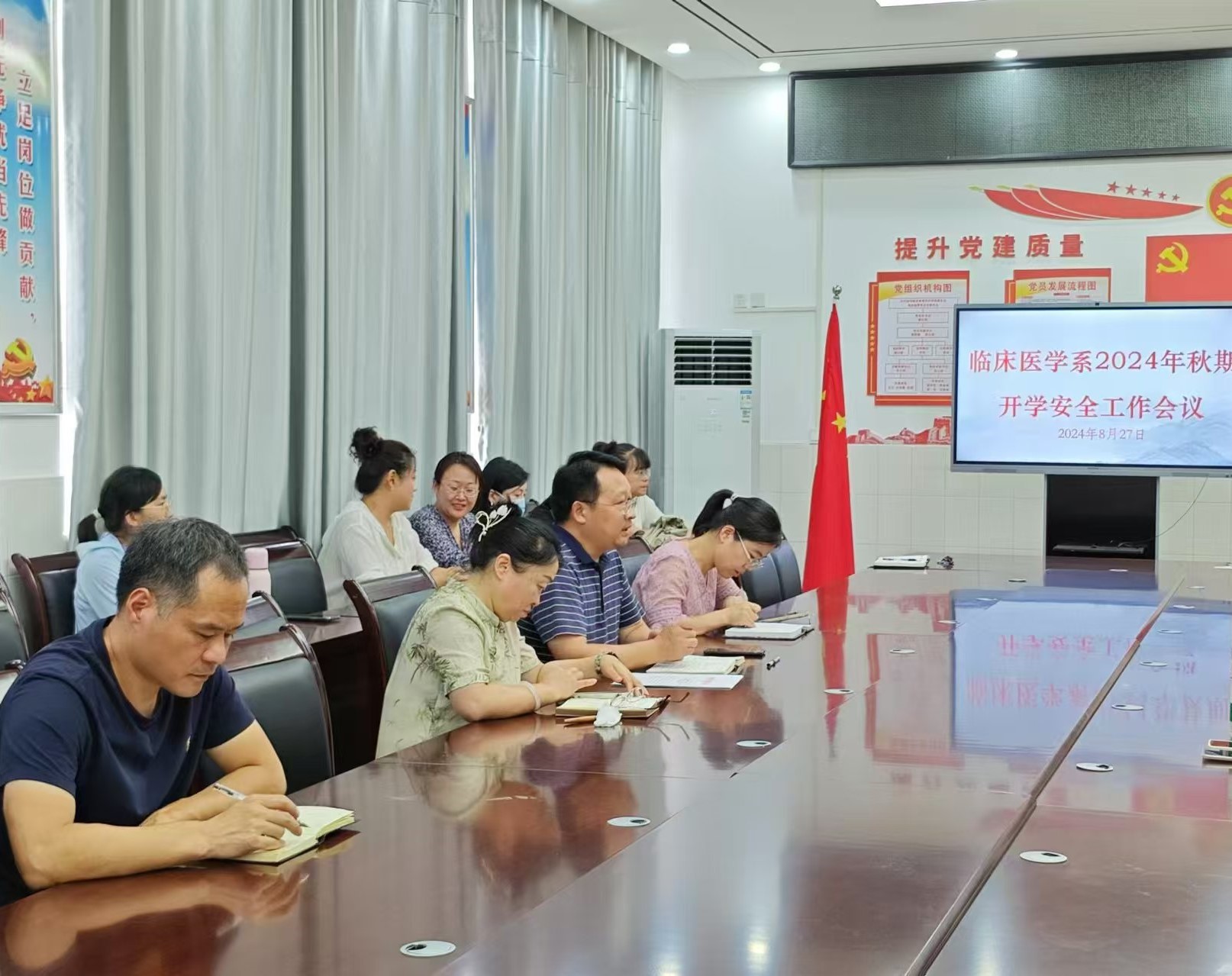 8月27日,在4号教学楼408会议室,临床医学系召开2024年秋期开学安全工作会。会议由系党总支书记宗山林主持,全体教职工参会。