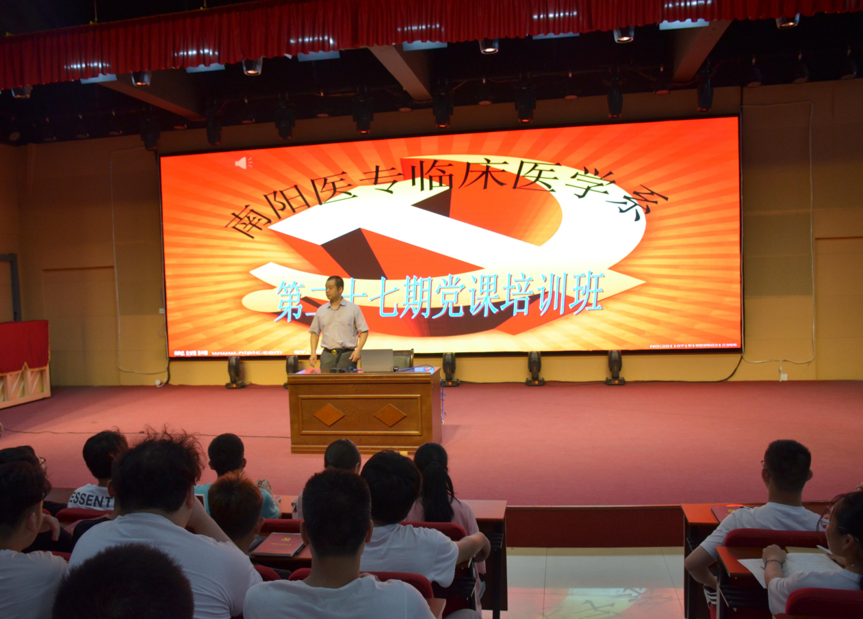 5月31日下午16:50,临床医学系第27期入党积极分子党课培训班在仲景东区学术报告厅教室顺利举行。临床系党总支书记秦玖刚,总支纪检委员李玲,出席讲课。