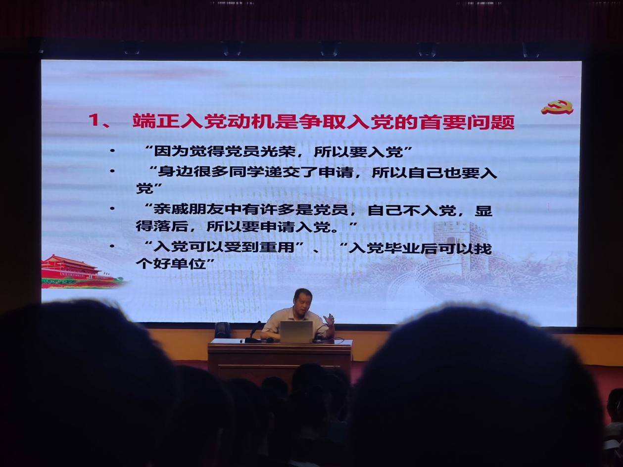 秦玖刚书记在党课培训第二讲中,强调作为先进的入党积极分子应该端正入党动机,按照党员标准严格要求自己;正确认识和对待党员标准,自觉接受党组织的培养教育与考察,严格履行入党手续;以实际行动争取入党,入党后要努力保持共产党员的先进性和纯洁性。坚决反对“入党前拼命干,入党后松一半”的思想。