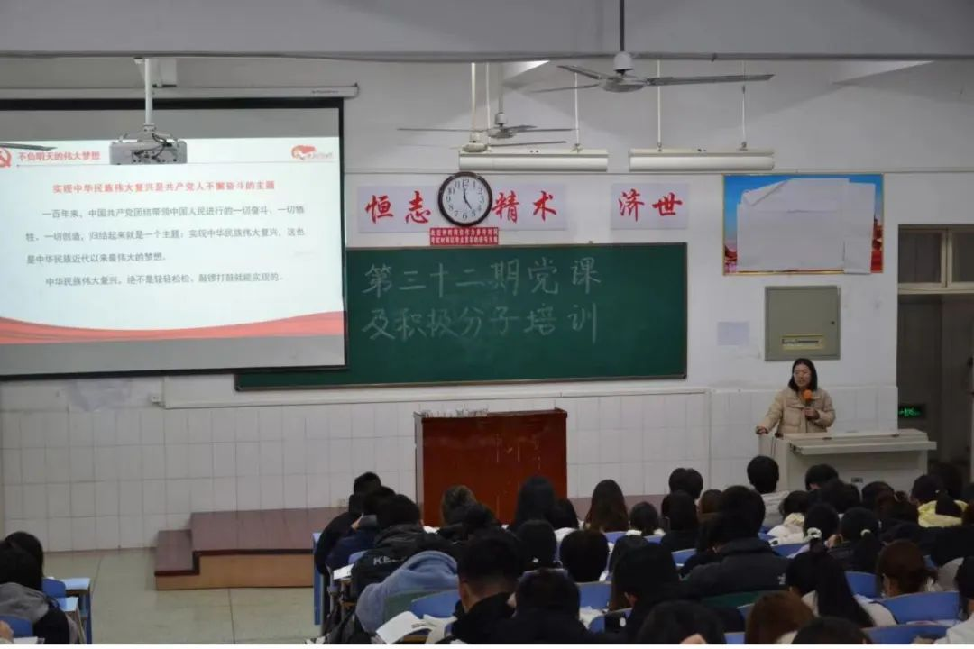 随后,宗山林书记进行了第一次授课。授课内容具体围绕《以实际行动争取做一名合格的共产党员》为主题,阐明了只有拥有正确的入党动机,坚定不移的信念,再加之以实际行动去争取入党,才能早日成为一名共产党员;第二讲黄川锋副主任以《深刻认识主题教育的重大意义争做一名合格的新时代大学生》为题,围绕习近平新时代中国特色社会主义思想的核心为同学们讲述了“八个明确”和“十四个坚持”,并告诫同学们要紧紧锚定目标任务、坚持读原著、学原文、悟原理,积极参加社会实践和竞赛活动锻炼自己。指出青年是祖国的未来,当代青年应当奋发图强;第三讲王川副书记围绕《以史为鉴 开创未来 再启新程》,让同学们深刻认识到中国特色社会主义来之不易,告诫同学们要高举中国特色社会主义旗帜,坚定不移跟党走。