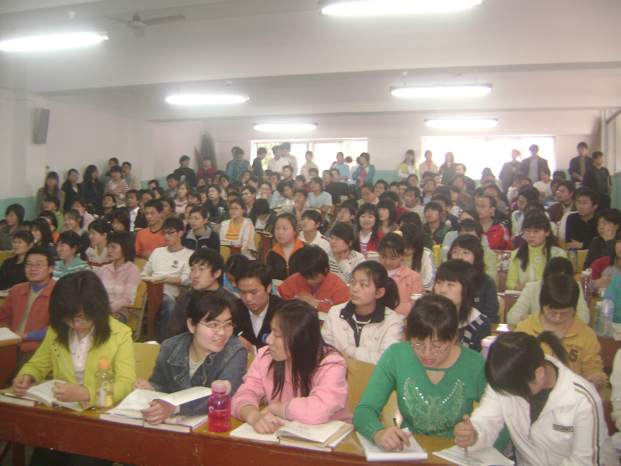学生挤满大教室听讲座