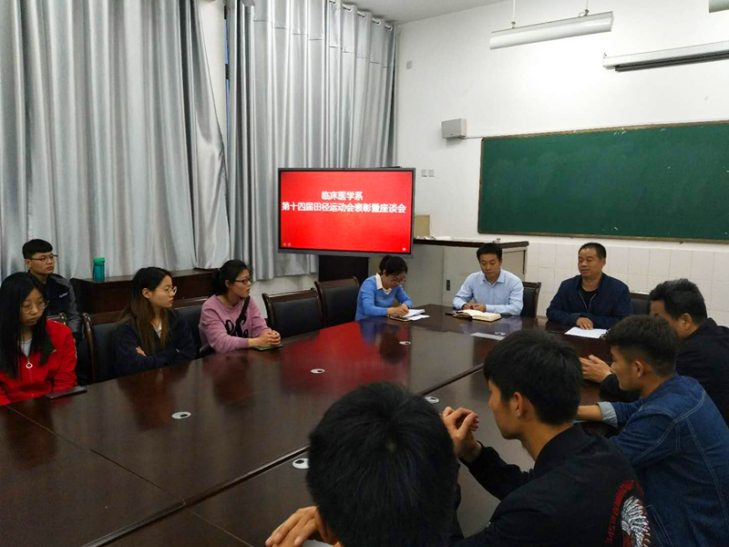 本网讯(文/王川)4月6日晚上,临床医学系在4号教学楼408会议室举办第十四届田径运动会优秀运动员和服务者表彰暨座谈大会,系领导、部分辅导员和参赛运动员、服务学生参会,会议由系党总支书记秦玖刚同志主持。