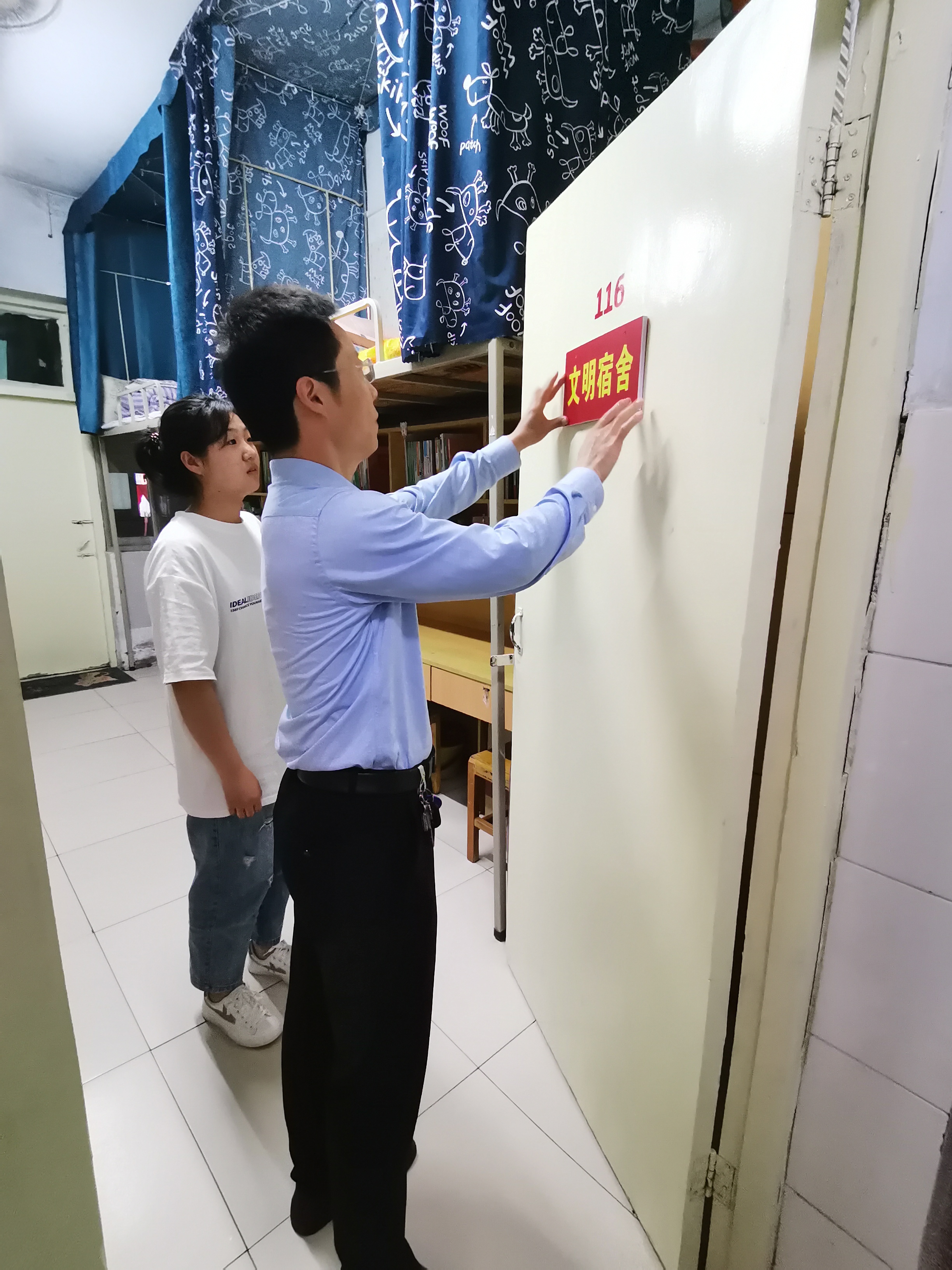 活动伊始,张立润副书记对80个宿舍进行了表彰,紧接着各位领导老师分别亲手为受表彰的宿舍挂上象征责任和使命的“学生党员示范宿舍”和象征荣誉的“文明宿舍”牌,并与同学们亲切交谈,了解同学们的学习、生活,督促学生党员要起到表率,将党史精神进一步落到行动中,在宿舍间积极营造良性的“比、学、赶、超”氛围,促进系风、学风、舍风建设,带动身边的同学积极向党组织靠拢。