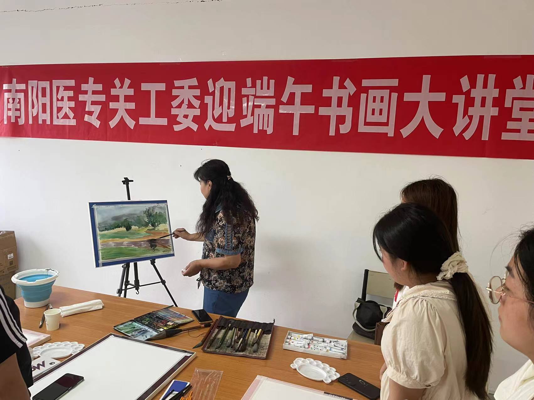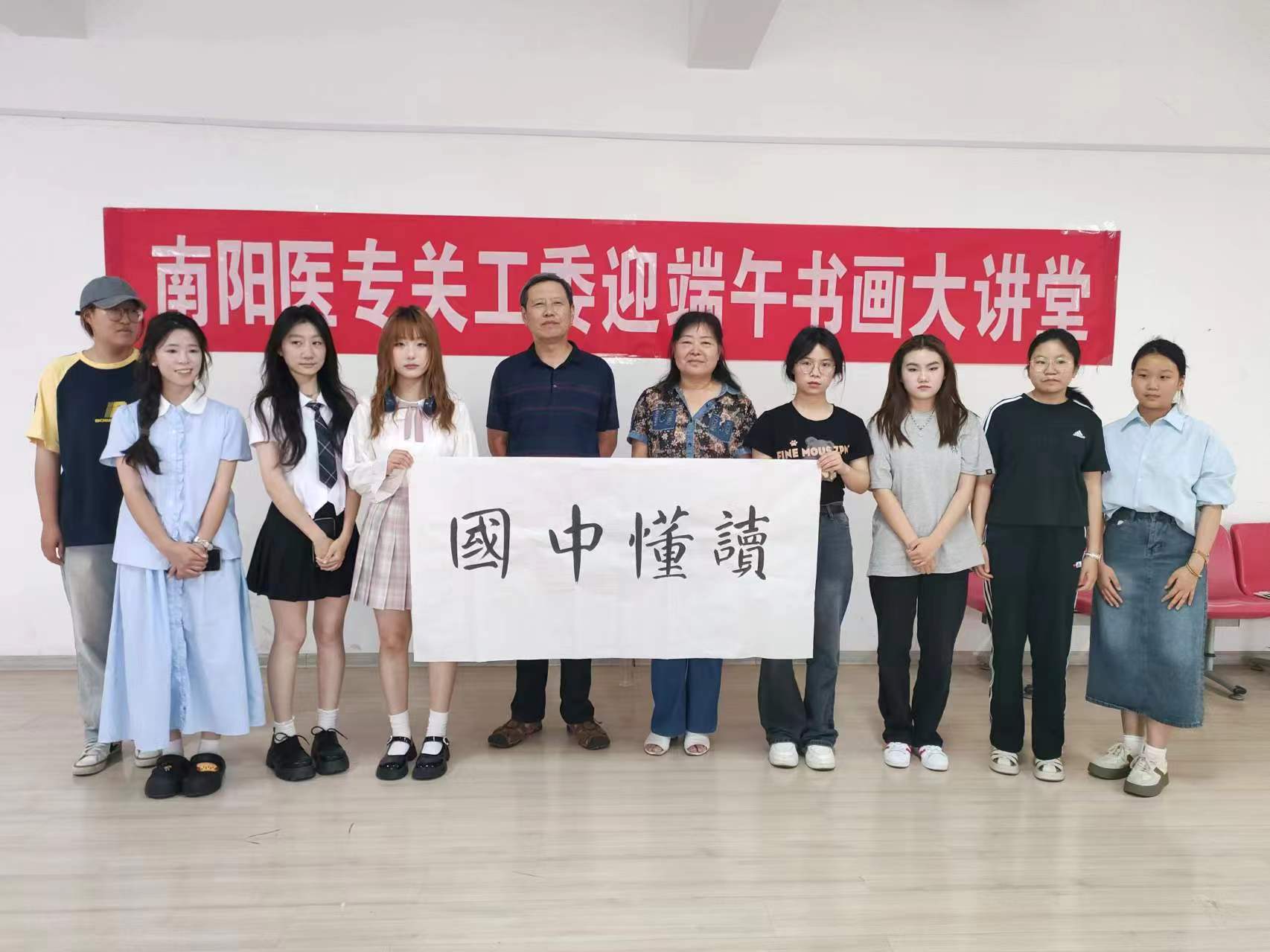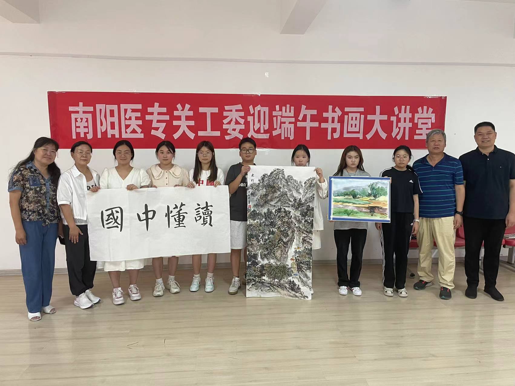 为继承和弘扬中华优秀传统文化,落实习近平总书记对学校美育工作的指示精神,6月7日,由南阳医专关工委、团委主办,国教院承办的“迎端午·书画大讲堂”活动在体育馆召开。本次活动主题为“国学铸魂,书画为骨”,由关工委“五老”仵湘君老师、校工会李峰松老师主讲,校党委委员、工会主席、关工委副主任杜晓平,离退休职工工作处李留文,外事处处长、国教员党总支书记范卫杰出席活动,来自各系部的60余名学生报名参加。