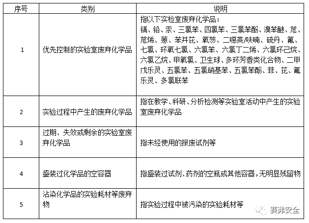 1.根据GB/T 31190-2014《实验室废弃化学品收集技术规范》,实验室危险废弃物可按下表分类:
