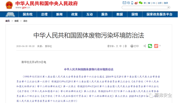 近期公布,将于2020年9月1日实施的新《中华人民共和国固体废物污染环境防治法》中特别增加了对实验室的管理要求:“第七十三条 各级各类实验室及其设立单位应当加强对实验室产生的固体废物的管理,依法收集、贮存、运输、利用、处置实验室固体废物。实验室固体废物属于危险废物的,应当按照危险废物管理。"